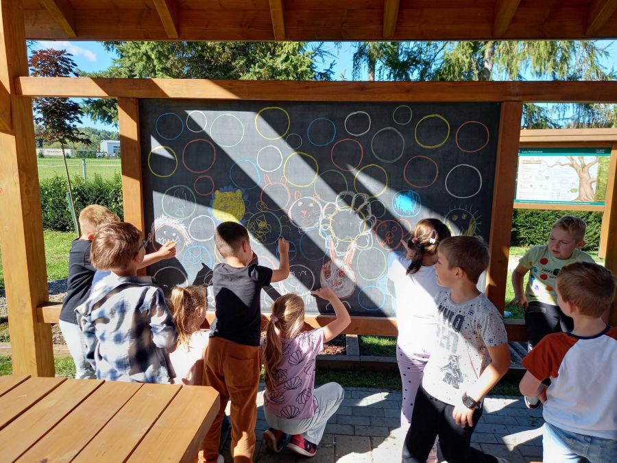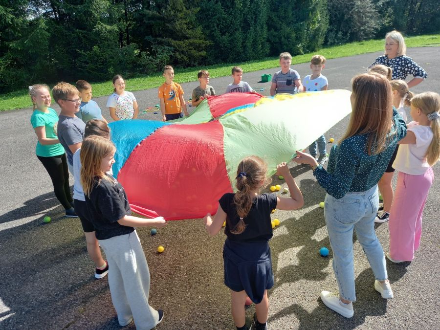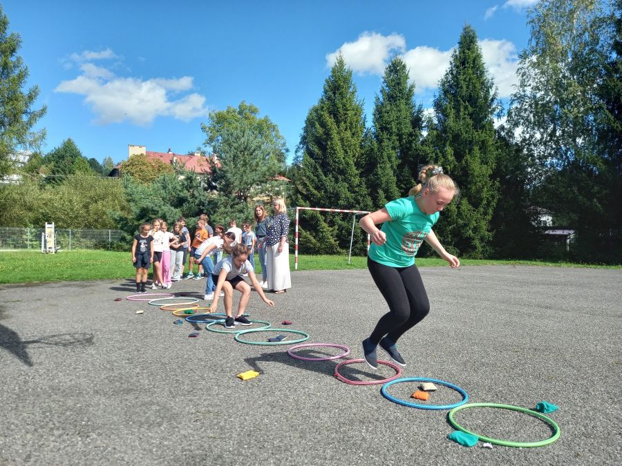 "Bo w Dniu Kropki nie o kropki chodzi…". Ten symboliczny znak ma przypominać, że każde dziecko ma talent, a naszym zadaniem jest dostrzec ten talent i wspierać w jego rozwijaniu. W tym roku postawiliśmy na aktywność fizyczną i rozwijanie talentów sportowych: skoczności, celności, koordynacji wzrokowo-ruchowej, zręczności. Motyw kropki królował na szkolnych korytarzach, w klasach, a nawet w szkolnej stołówce. Niech każda kropka stanie się początkiem pięknej historii – początkiem drogi prowadzącej do osiągnięcia celu.