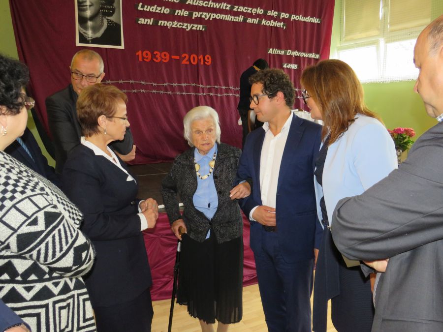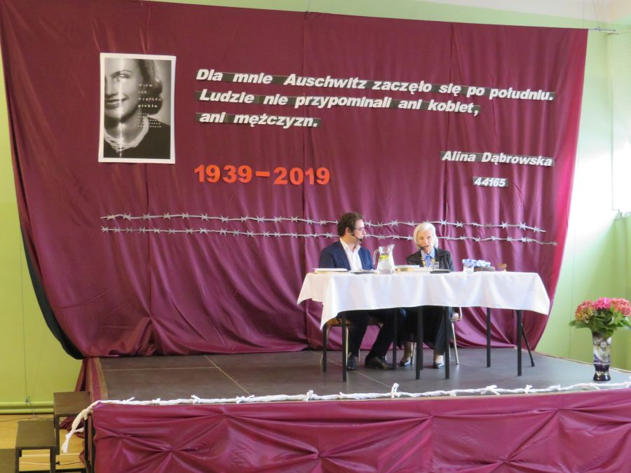 Pani Alina Dąbrowska dziewięćdziesięciosześcioletni świadek drugiej wojny światowej zjawiła się w środę 25 września 2019 roku o godz. 10:00 w Szkole Podstawowej im. Komisji Edukacji Narodowej w Zagórzanach. Moderator spotkania mgr Mateusz Jamro poznał prelegentkę podczas obchodów 70 rocznicy wyzwolenia obozu w Buchenwaldzie.