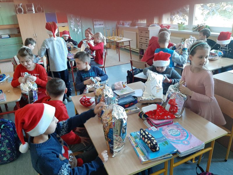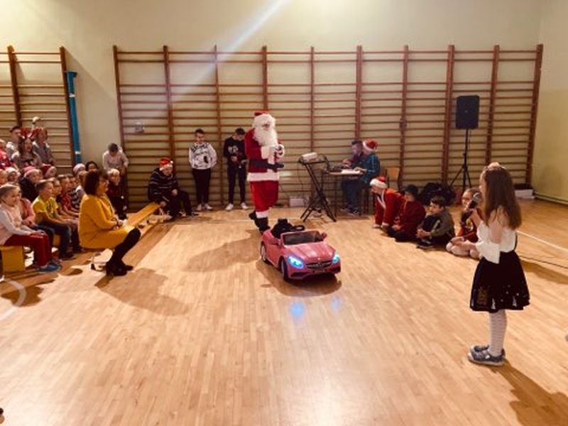 W dniu szóstego grudnia do naszej szkoły przyjechał nowoczesny, zmotoryzowany Święty Mikołaj. Brak śniegu nie przeszkodził mu w dostarczaniu upominków, na które dzieci czekały cały rok. Ku zaskoczeniu zebranych, na teren szkoły wjechał Mercredesem. Uczniowie klasy II pod opieką wychowawczyni, pani Ewy Zasowskiej, przygotowali i zaprezentowali program artystyczny pod tytułem ,,Gdzie jest worek Św. Mikołaja?". Mieszkańcy lasu, w których role wcieliły się dzieci, podjęli trud poszukiwania zagubionego worka z prezentami. Dzięki ich aktywności, kreatywności i życzliwości udało się przyłapać sprawców na gorącym uczynku, ocalić tradycję i uszczęśliwić społeczność szkolną. Entuzjazm i zadowolenie dzieci wyraziły wspólnym śpiewem piosenki ,,Święta to czas niespodzianek".
