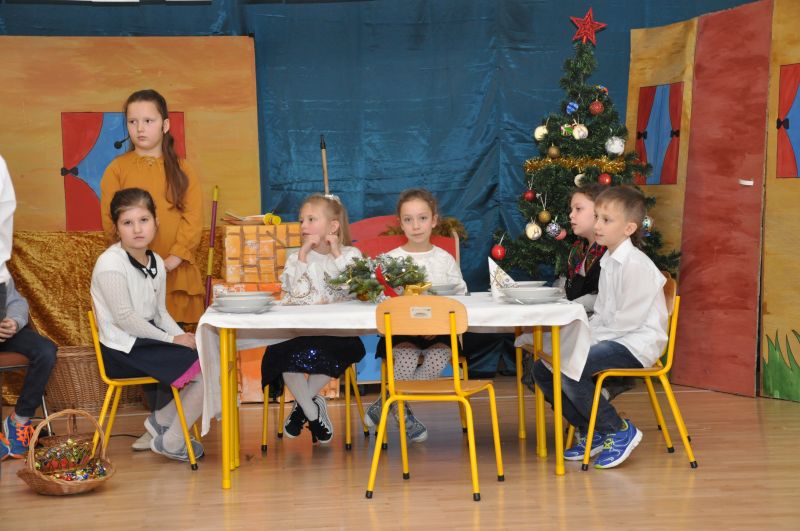 To przedstawienie było wyjątkowe, ponieważ historia Bożego Narodzenia przeplatała się ze scenkami z życia współczesnej rodziny przygotowującej się do świąt. W ostatniej odsłonie przyszli tradycyjni kolędnicy i złożyli życzenia wszystkim obecnym na sali. Całość przedstawienia przeplatana była kolędami i pastorałkami. Ogromne zaangażowanie młodych aktorów i nauczycieli opłaciło się, gdyż przedstawienie wywarło duże wrażenie. Dzieci miały możliwość zaprezentowania swoich umiejętności artystycznych.