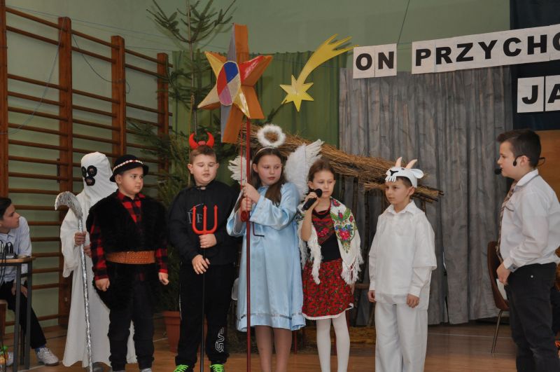 Dnia 20 grudnia 2019, jak co roku, w naszej szkole odbyło się widowisko o Bożym Narodzeniu. Zostało przygotowane przez uczniów klasy II i III Szkoły Podstawowej w reżyserii p. Marzeny Nikiel i Ewy Zasowskiej.