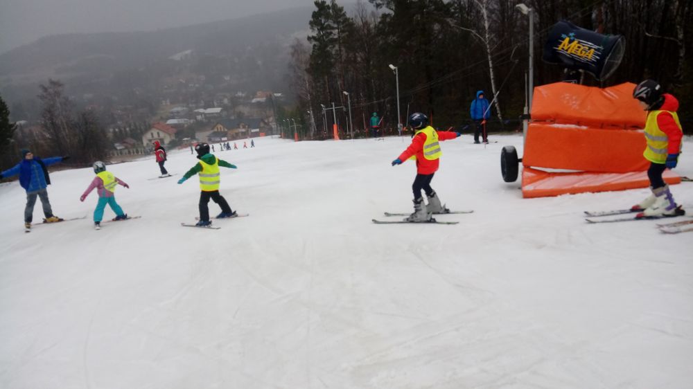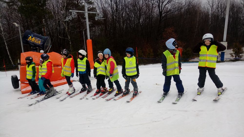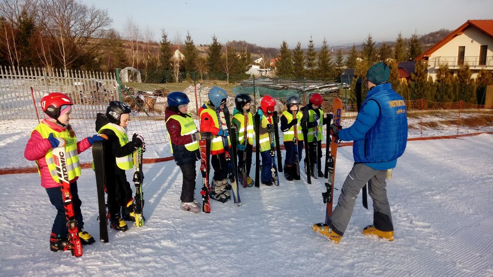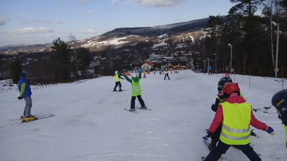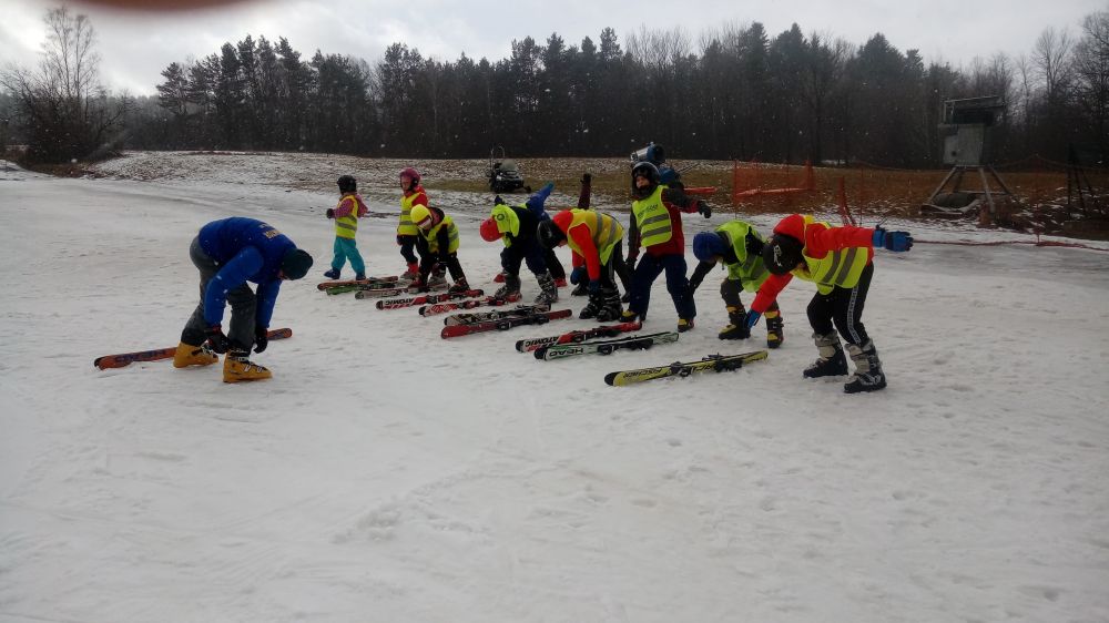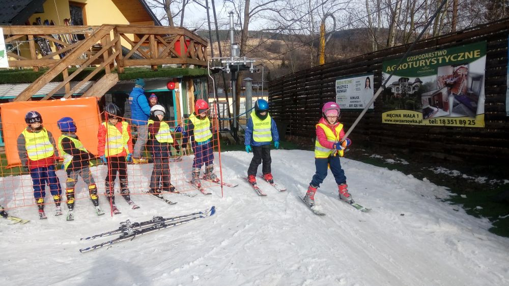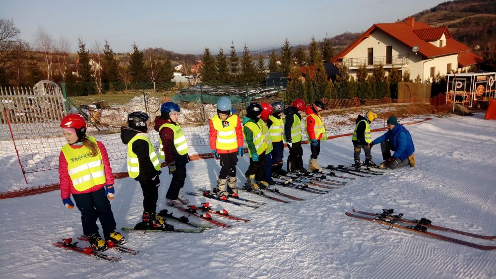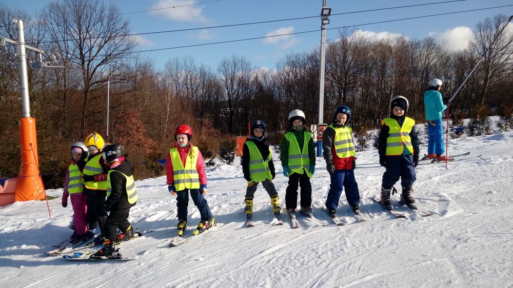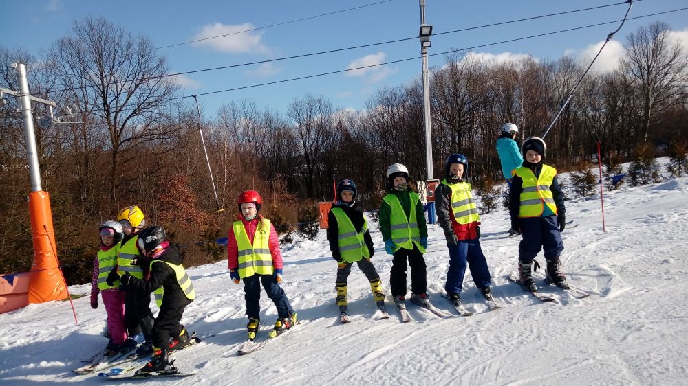 W tym roku nasza szkoła przystąpiła do projektu, dziesięcioro uczniów klas 2 - 4 realizowało zajęcia w dniach 27.01. 2020 r. do 07.02.2020 r., podczas ferii zimowych w cyklu sześciu wyjazdów po trzy godziny zajęć na stoku. Początki były trudne, ale już na drugich zajęciach, uczniowie zaczęli samodzielnie wyjeżdżać orczykiem na stok i pod opieką instruktora zjeżdżali. Pogoda nie zawsze dopisywała, było słońce, padał śnieg, ale był też deszcz, lecz mimo tego cała dziesiątka dzielnie realizowała zadanie. Kolejne wyjazdy to była już sama przyjemność, uczniowie szlifowali technikę zjazdów i coraz swobodniej czuli się na stoku. Zamiast niepewności i lęku pojawiła się radość i zadowolenie. Rodzice i dziadkowie coraz częściej przyjeżdżali podziwiać postępy swoich pociech. Wszyscy uczestnicy projektu na ostatnich zajęciach dostali od gospodarza wyciągu dyplom ukończenia kursu.