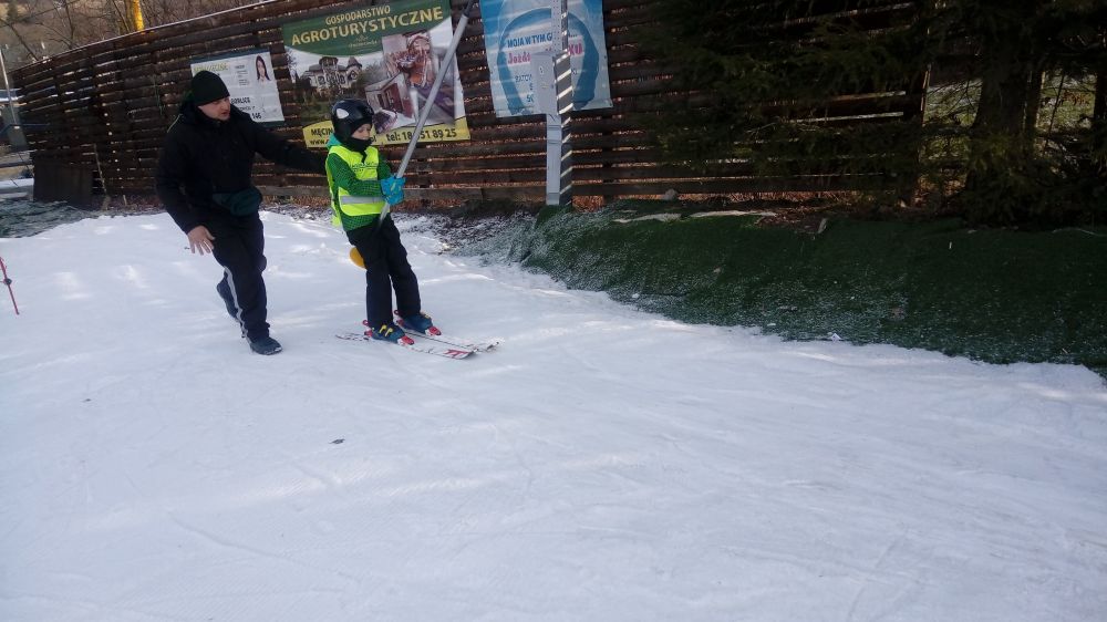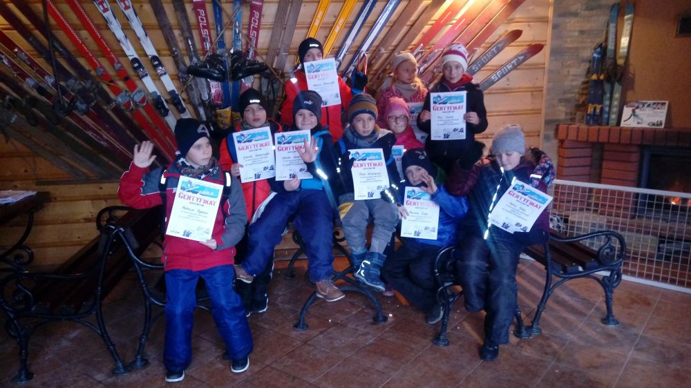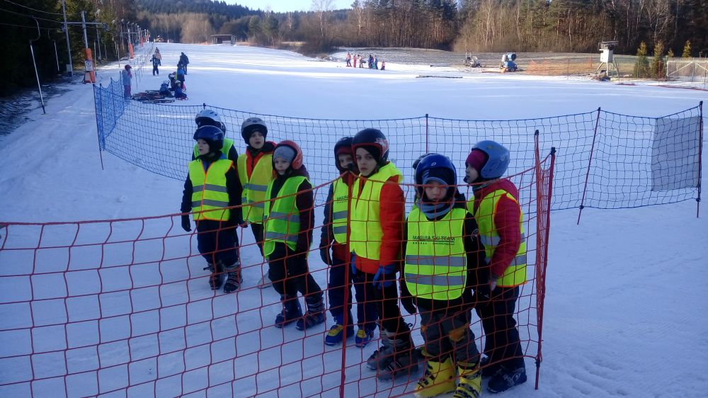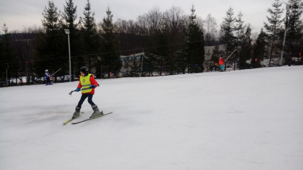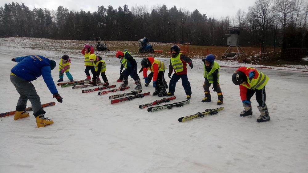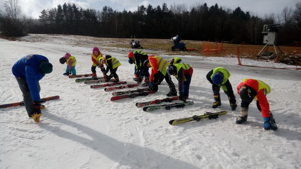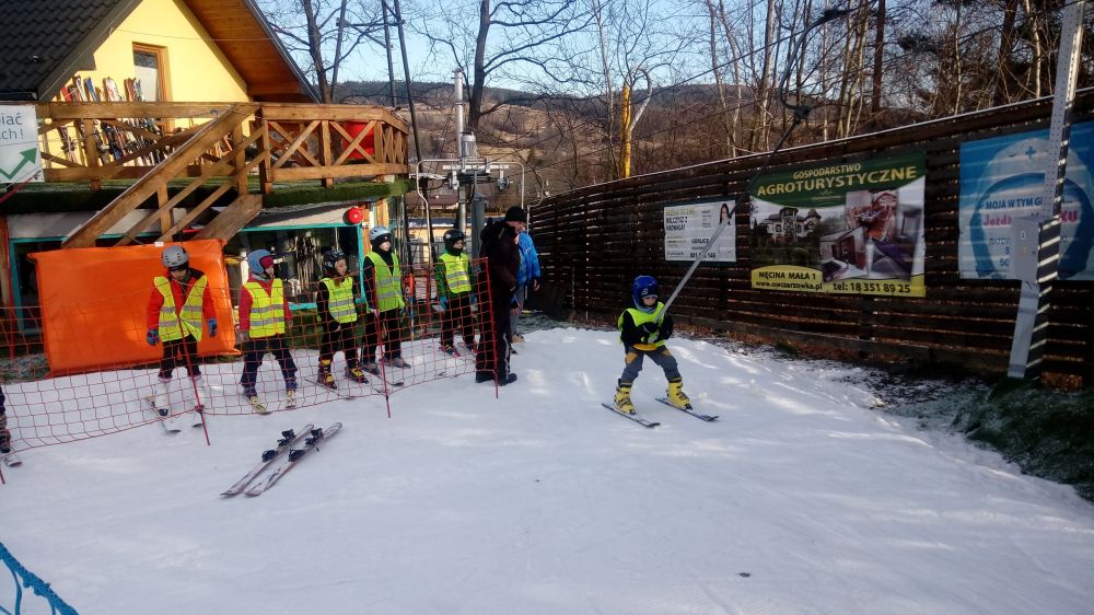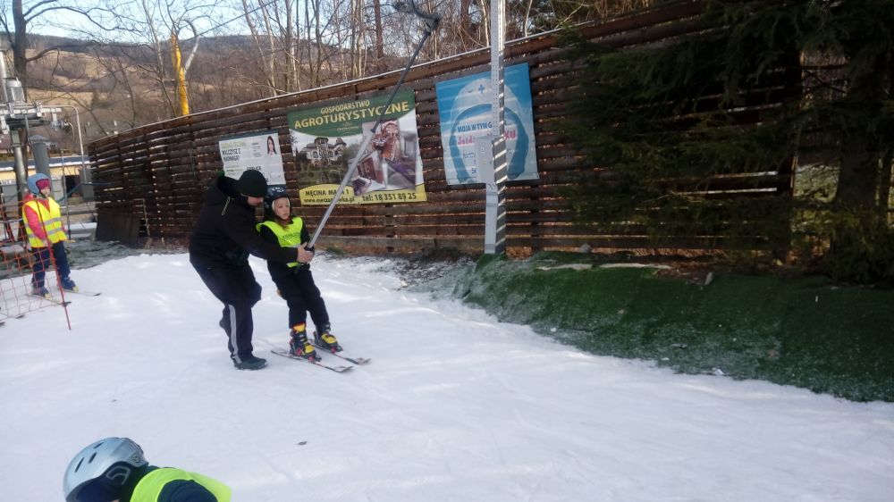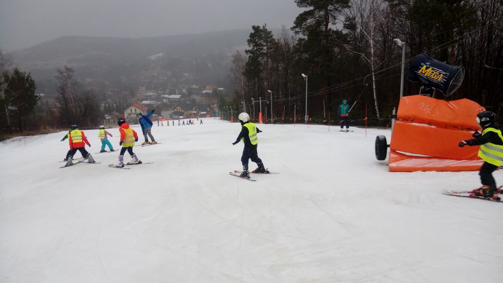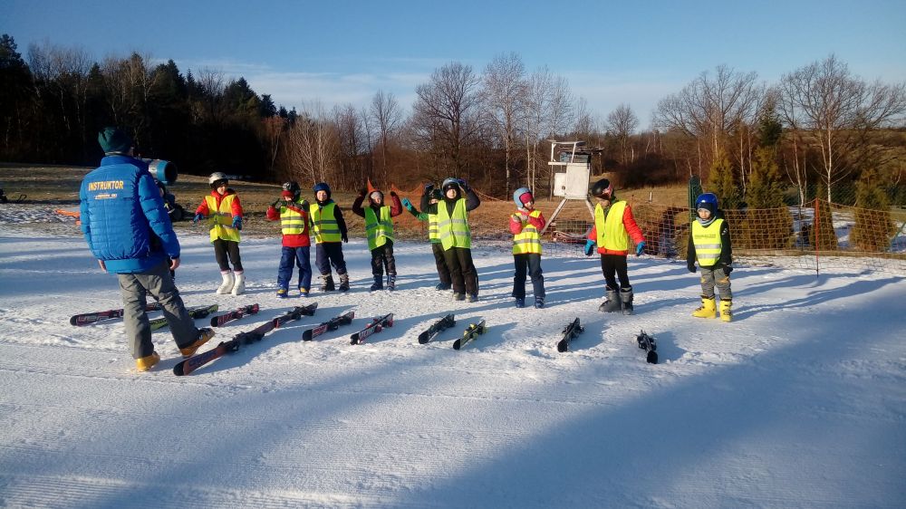 W tym roku nasza szkoła przystąpiła do projektu, dziesięcioro uczniów klas 2 - 4 realizowało zajęcia w dniach 27.01. 2020 r. do 07.02.2020 r., podczas ferii zimowych w cyklu sześciu wyjazdów po trzy godziny zajęć na stoku. Początki były trudne, ale już na drugich zajęciach, uczniowie zaczęli samodzielnie wyjeżdżać orczykiem na stok i pod opieką instruktora zjeżdżali. Pogoda nie zawsze dopisywała, było słońce, padał śnieg, ale był też deszcz, lecz mimo tego cała dziesiątka dzielnie realizowała zadanie. Kolejne wyjazdy to była już sama przyjemność, uczniowie szlifowali technikę zjazdów i coraz swobodniej czuli się na stoku. Zamiast niepewności i lęku pojawiła się radość i zadowolenie. Rodzice i dziadkowie coraz częściej przyjeżdżali podziwiać postępy swoich pociech. Wszyscy uczestnicy projektu na ostatnich zajęciach dostali od gospodarza wyciągu dyplom ukończenia kursu.