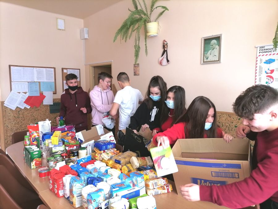 Otwórzmy serce na potrzeby innych to inicjatywa, którą zaplanowali i przeprowadzili uczniowie klasy VIII w terminie od 9 do 15 lutego br. Celem podjętych działań była zbiórka żywności i artykułów chemicznych przeznaczonych dla rodziny z terenu naszej gminy, która ucierpiała w pożarze. W akcję włączyli się Rodzice i Uczniowie wszystkich klas. Dzięki Państwa życzliwości, wyrozumiałości i hojności udało się nam przygotować paczki, które 17 lutego trafiły do poszkodowanych. Trudno opisać radość i wdzięczność obdarowanych, którzy nie spodziewali się takiej pomocy. Cieszymy się, że wspólnie mogliśmy zrobić coś, co wniosło chociaż promyczek nadziei i radości w życie innych osób. Dziękujemy za otwarte serce.