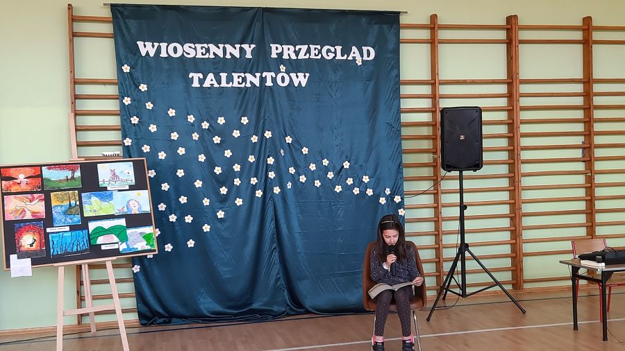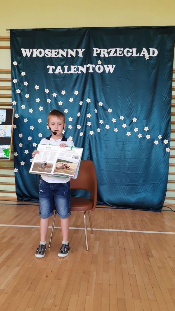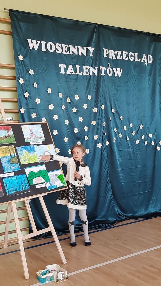Wiosenne ciepłe dni, powrót uczniów do szkoły spowodował, że w końcu udało nam się zorganizować Wiosenny Przegląd Talentów. 12 maja 2021 r. chętni uczniowie klas I–III SP zaprezentowali swoje zainteresowania, pasje, hobby, talenty. Uczniowie stanęli na wysokości zadania prezentując talenty plastyczne, muzyczne, taneczne, gimnastyczne, wokalne, kabaretowe, sceniczne. Zabawa była wspaniała, niektóre umiejętności wręcz zaskakujące. Gromkie brawa publiczności potwierdziły, że prezentacje bardzo się podobały.
