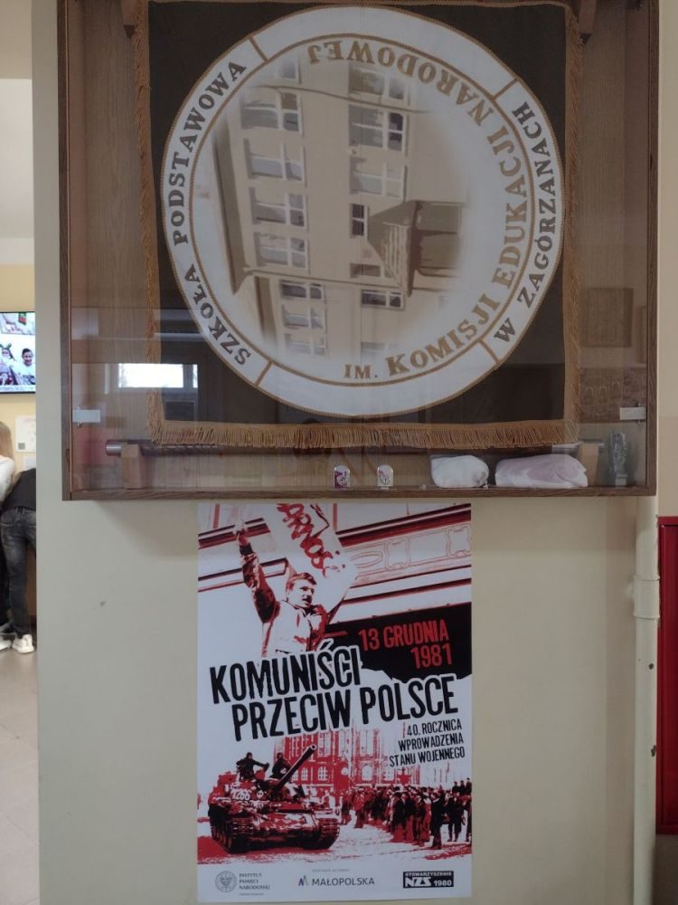 Podczas lekcji historii lub zajęć z wychowawcą zapoznali się z materiałami filmowymi oraz materiałami edukacyjnymi do wystawy elementarnej "Stan wojenny 1981-1983" dostępnymi na stronie internetowej Instytutu Pamięci Narodowej. Uczniowie potrafią umiejscowić w czasie stan wojenny w Polsce, wskazać konsekwencje stanu wojennego dla życia codziennego Polaków, tragiczne skutki dla osób zaangażowanych w opozycję antykomunistyczną.