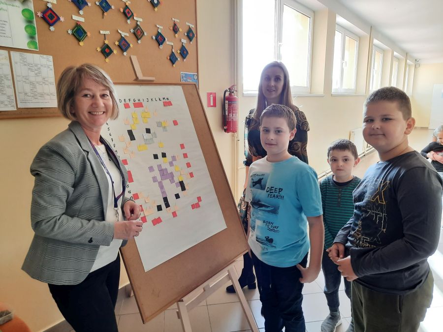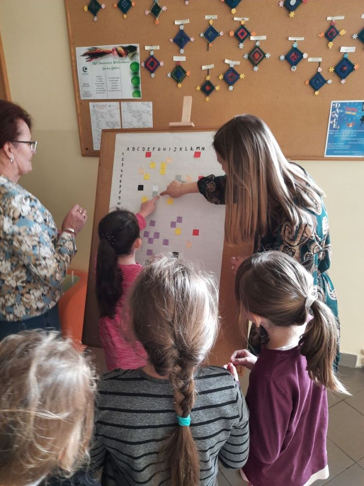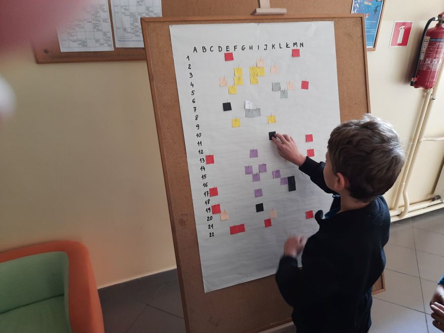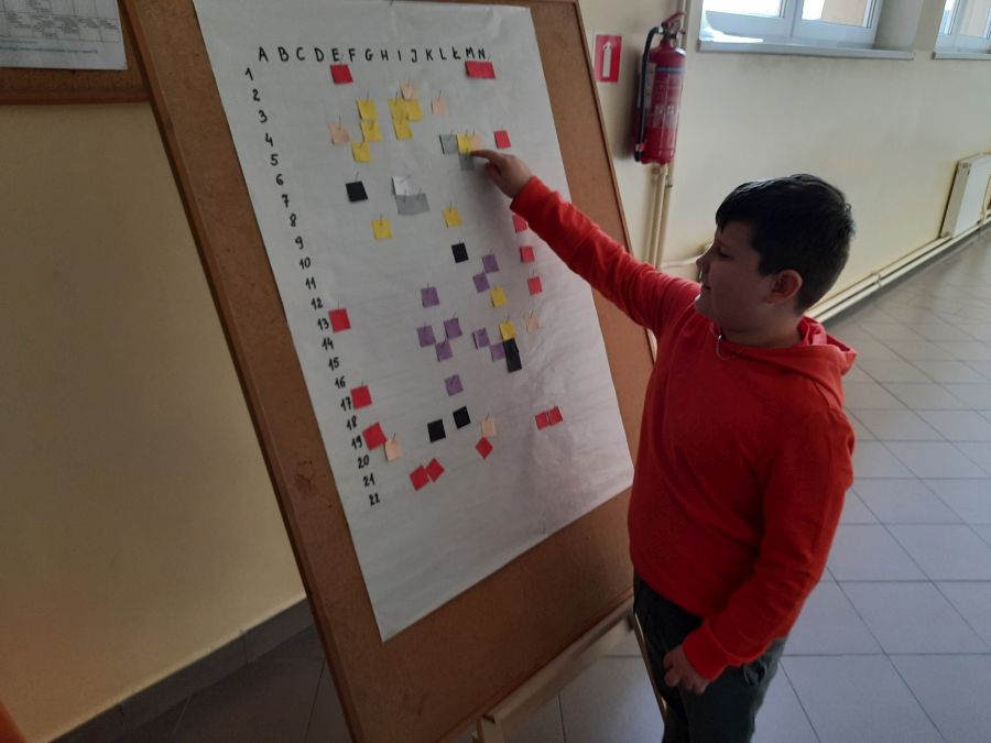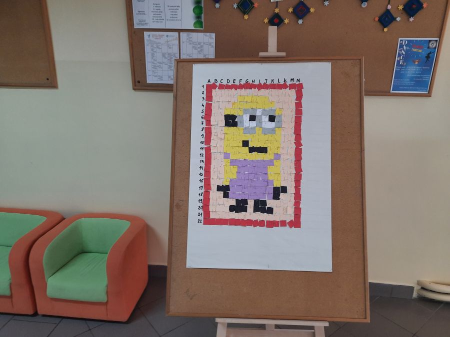 Najmłodsi uczniowie z klasy I – III kodowali z origami – wykorzystując matę do kodowania, tworzyli obrazek z wykorzystaniem kodu i puzli. Losowali poszczególne elementu kodu i stworzyli wspólnie "obraz" Minionka.