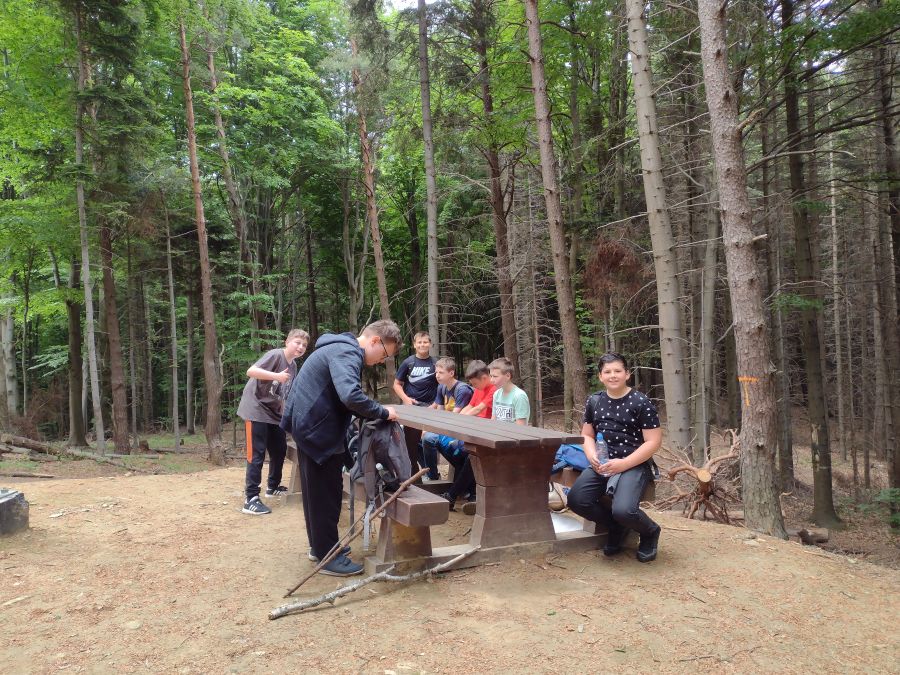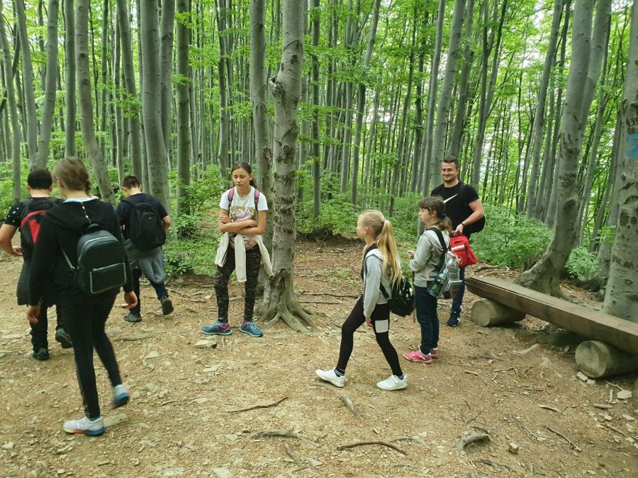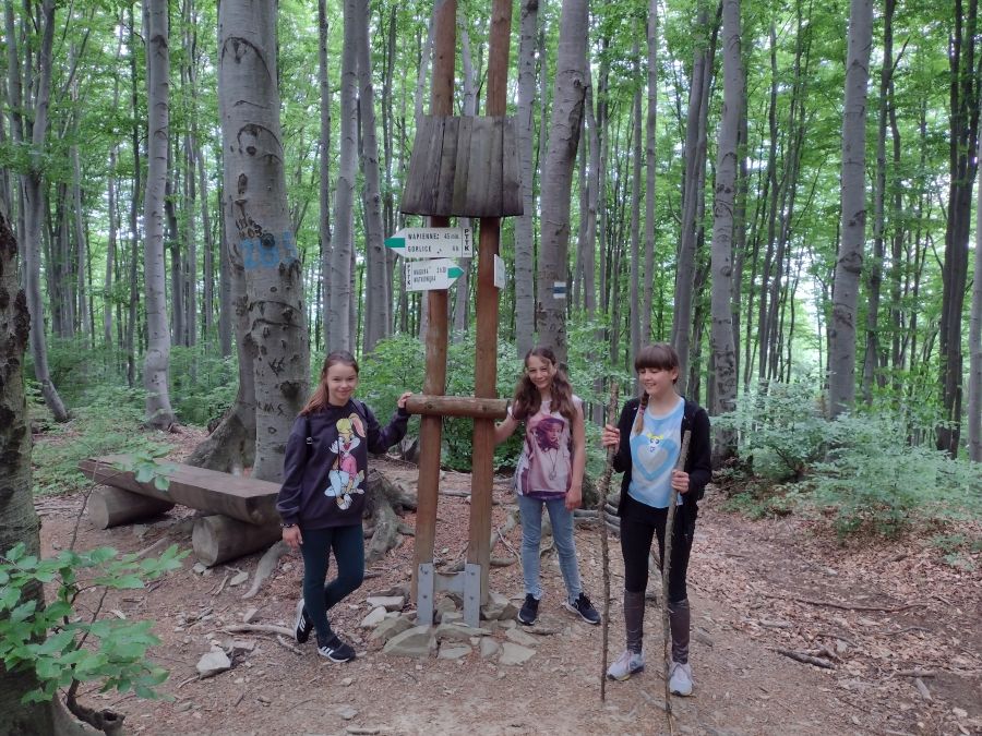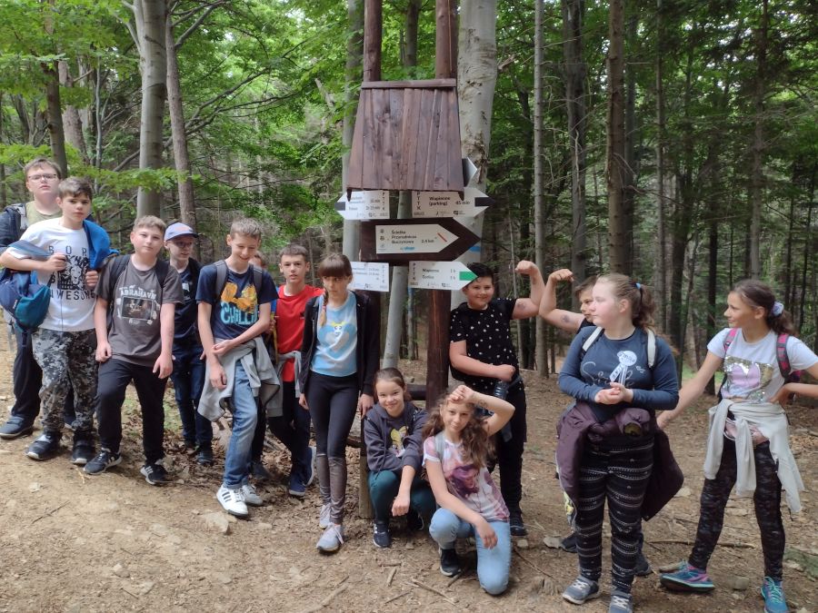Jak zawsze 1 czerwca nastawieni turystycznie uczniowie klas trzeciej, czwartej oraz szóstej udali się w Beskid Niski. Pod troskliwą opieką nauczycieli: Joanny Nosal, Renaty Wantuch, Małgorzaty Stępień i Krystiana Szula oraz rodziców Marii Uszko i Elżbiety Wołkowicz ruszyli na zielony szlak. W Wapiennem najciekawszym szlakiem jest dość nowa (od 2019 r.) Ścieżka Przyrodnicza "Buczynowa". Leśna trasa okazała się jest mało wymagająca, więc dzielnie radzili sobie wszyscy. Króciutkie tablice edukacyjne zwracały uwagę turystów na roślinne atrakcje przyrodnicze Magurskiego Parku Narodowego. Okazało się, że poeta Jerzy Harasymowicz bukowe drzewa nazwał "srebrnymi rycerzami" Beskidu Niskiego. Wędrowcy dotarli na Mały Ferdel położony na wysokości 578 m n.p.m. Odważnie wspinali się na 25-metrową wieżę widokową, z której podziwiali rozległą panoramę lesistych wzniesień. Na dowód pobytu każdy uczestnik przybił sobie okolicznościowy stempel. Potem kiełbaska upieczona na terenie najmniejszego uzdrowiska w Polsce smakowała wyśmienicie. Zielone tereny , świeże powietrze, doskonałą pogoda, a także gry i zabawy rekreacyjne przyniosły zadowolenie wszystkim dzieciom. A przecież o to właśnie chodzi, aby korzystać różnych form aktywności ruchowej.