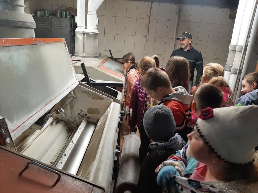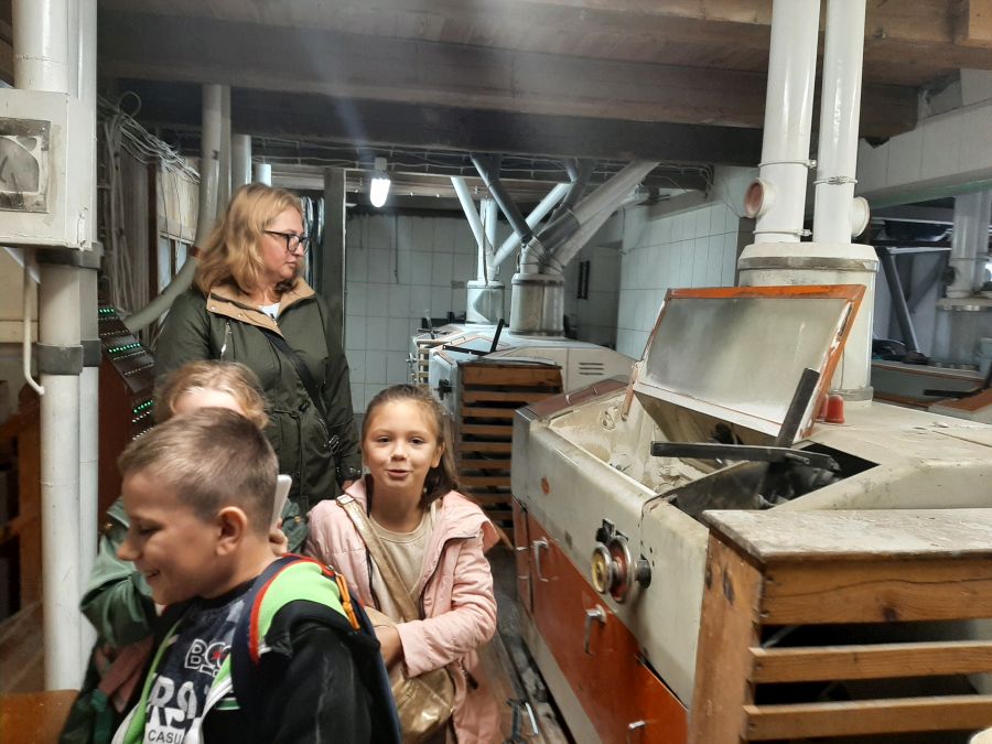 W piątek 1 października uczniowie klasy III wybrali się na wycieczkę do młyna. Dzieci miały okazję zwiedzić Młyn Zbożowy w Rzepienniku Biskupim, którego właścicielem jest Pan Marek Wołkowicz. Pan Marek (wujek kolegi Filipa) oprowadził naszą gromadę po młynie, pokazał pracujące tam maszyny i opowiedział o tym, jak ziarno zboża zamienia się w różnego typu mąki, kasze i otręby. Podopieczni obejrzeli, w jaki sposób pakowane są produkty do sprzedaży na taśmie oraz zapoznali się z pracą młynarza. Uczestnicy wyprawy byli pod ogromnym wrażeniem pracy maszyn i człowieka. Było to dla nich ciekawe i pouczające doświadczenie.