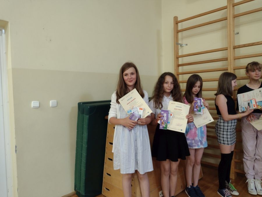 Zakończyła się piąta edycja projektu "Małopolskie Talenty". Uczniowie pracowali w ośmioosobowych grupach i pod kierunkiem nauczycieli realizowali projekty z kompetencji przedmiotowych: matematyczno-przyrodniczych, technologii informacyjno-komunikacyjnych, języka angielskiego i przedsiębiorczości. Rozwijali również kompetencje ponadprzedmiotowe. Na zakończenie każdej edycji odbywa się konkurs na projekt edukacyjny realizowany w Centrum Wsparcia Uczniów Zdolnych. Wartościowe nagrody w I etapie edukacyjnym odebrali: Jagoda Bukowska, Mateusz Bargieł, Julia Filuś i Przemysław Zając z klasy piątej oraz Beata Kamyk i Bartłomiej Wadas z klasy szóstej, w II etapie: siódmoklasiści Antoni Ciapaj, Wojciech Halik, Kacper Lenar, Adam Kurzawa, Julita Pyznar i Maja Rydarowicz oraz z klasy ósmej Gabriela Hebrajska.