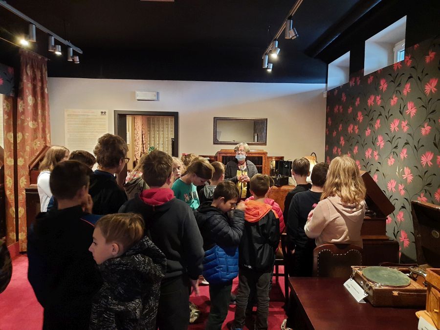 Uczniowie, podążając w kierunku Muzeum Fonografii, podziwiali pomniki Kazimierza Wielkiego, odważnej Justynki, rycerza w stalowej zbroi, Park Miejski z Dębem Wolności. Zaskakującą atrakcją Niepołomic jest Małopolskie Centrum Dźwięku i Słowa. To całkiem wyjątkowe miejsce, które opowiada historię zapisu i odtwarzania dźwięku. Pierwszy fonograf, tubowe gramofony, radioodbiorniki, adaptery, magnetofony, telewizory i walkmany, 150 eksponatów, z których najstarsze mają 130 lat. Wszystko przedstawione w układzie chronologicznym, na tle mieszkalnych wnętrz charakterystycznych dla poszczególnych okresów: od salonu z przełomu wieków XIX/ XX wieku poprzez niemal wszystkie dekady ubiegłego stulecia. Ostatnia sala z miękkimi pufami oferuje ponad dwa tysiące płyt winylowych, można posłuchać dowolnie wybranej.