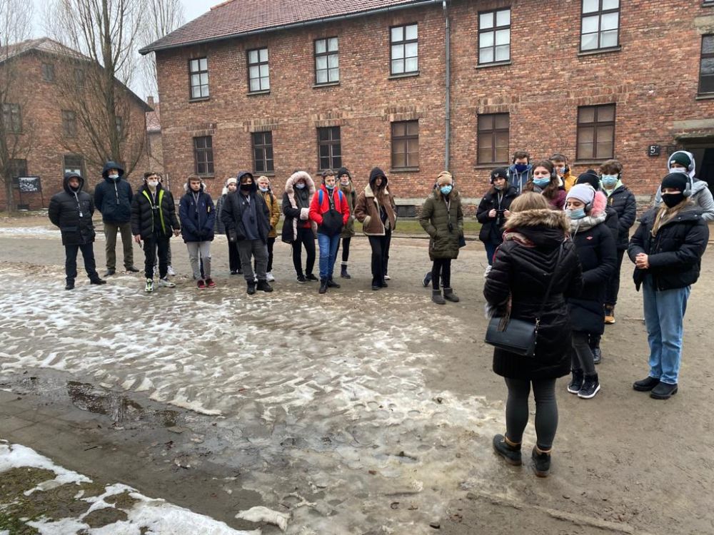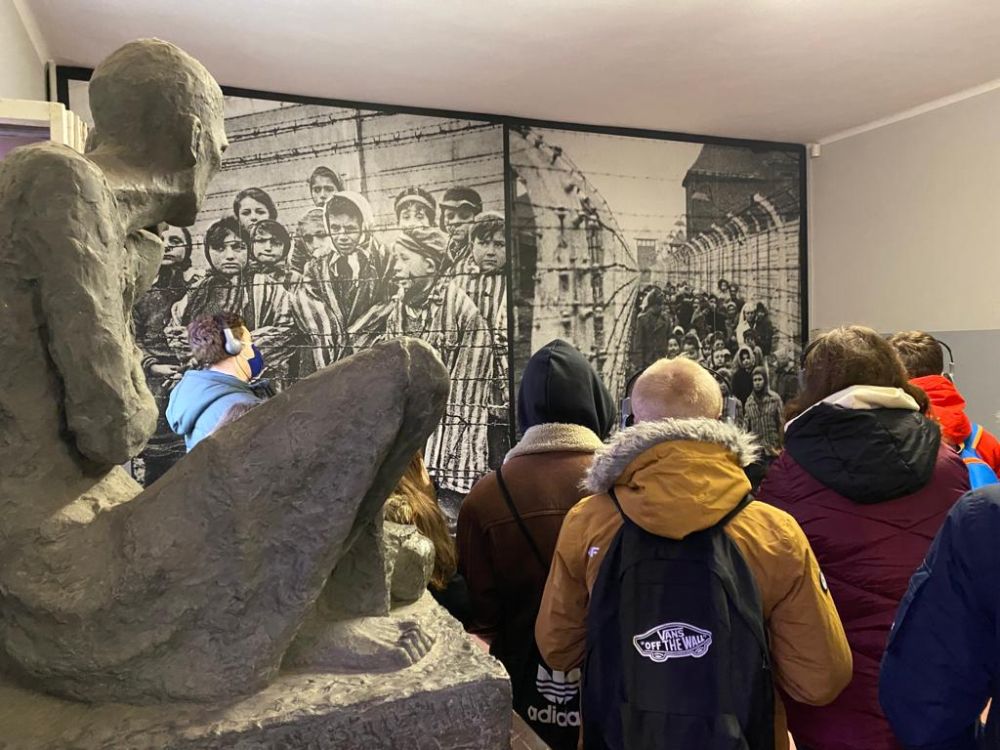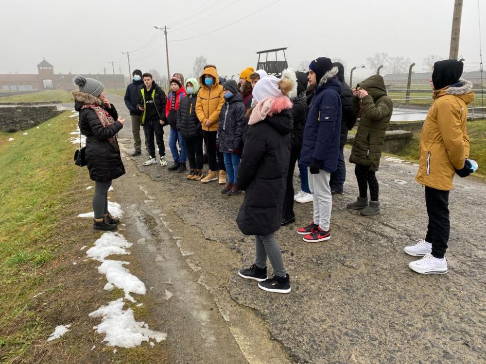 Mając na uwadze ogromne znacznie tych wydarzeń dla współczesnych pokoleń, w dniu 15 grudnia br. o 5:45 razem z Panią Dyrektor dr Iwoną Jamro wybraliśmy się z klasą VIII i kilkoma osobami z klasy VII do Oświęcimia, aby młodzież mogła na własne oczy przekonać się i zobaczyć, jaki los potrafił zgotować człowiek, drugiemu człowiekowi. Najpierw przez dwie godziny zwiedzaliśmy I obóz Auschwitz-Birkenau. Razem z panią przewodnik przemierzaliśmy drogę, jaką musieli przejść ci, którzy dostali się do obozu. Bardzo rzeczowe i kompetentne zaprezentowanie historii tego miejsca sprawiło, że młodzież z uwagą, przejęciem