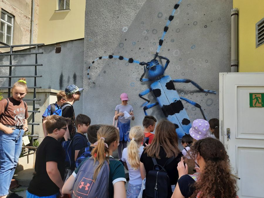 Spacerując po Gorlicach, warto mieć oczy dookoła głowy! W różnych zakątkach miasta "czają się" wyjątkowe owady – okazy z entomologicznej kolekcji ks. Bronisława Świeykowskego. Mini murale, niczym ryciny z kart przyrodniczego atlasu, ozdabiają budynki, mury, zakątki i zaułki Gorlic. My oglądamy niektóre z okazów, namalowanych przez mgr Morsa: wojsiłkę pospolitą (ul. Kręta), biegacza pospolitego (Dworzysko), nadobnicę alpejską (Dziedziniec Ratusza), pasikonika zielonego (ul. Świeykowskiego), husarza władcę (ul. 3 Maja) oraz jelonka rogacza (Park Miejski).