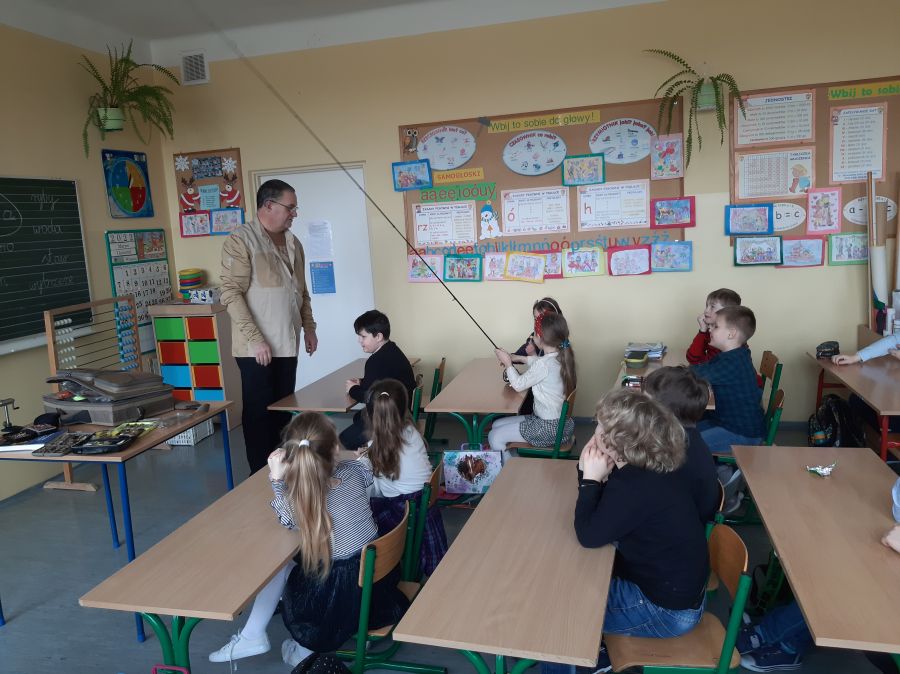 8 marca 2022 r. w klasie II odbyło się niezwykłe spotkanie. W związku z omawianą tematyką zajęć "Od źródła do morza" odwiedził nas dziadek jednej z uczennic, pan Antoni Bogdan, właściciel firmy AB-Fly produkującej sztuczne muchy, streamery, nimfy.