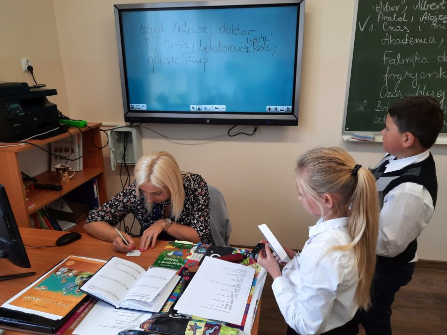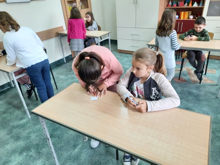 Czwartoklasiści byli niezwykle zmotywowani pełnieniem ważnej funkcji egzaminatora. Wszystko odbywało się pod okiem matematyczek – Barbary Kudławiec i Anety Motyki, które czuwały nad poprawnością przeprowadzanych egzaminów.