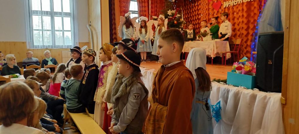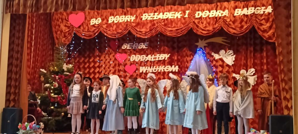 Na scenie przeistoczonej w szopkę betlejemską uczniowie zaprezentowali jasełka. Wspomnieli również, że Pan Jezus też miał dziadków, którzy bardzo go kochali, jednak nie mogli o tym opowiadać. W drugiej części uroczystości goście wysłuchali czułych słów kierowanych pod ich adresem, obejrzeli humorystyczny skecz i taniec. Mali artyści z przejęciem prezentowali swoje umiejętności teatralne i muzyczne. Goście ze wzruszeniem odbierali czułe słowa kierowane pod ich adresem, a duma z utalentowanych wnucząt rozpierała ich serca.