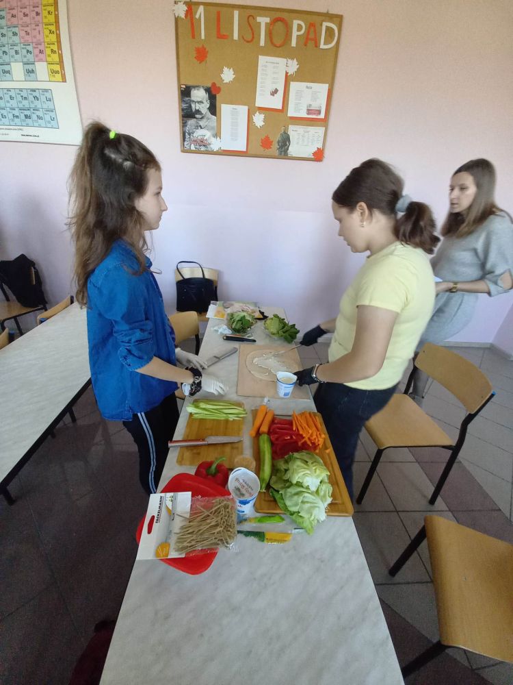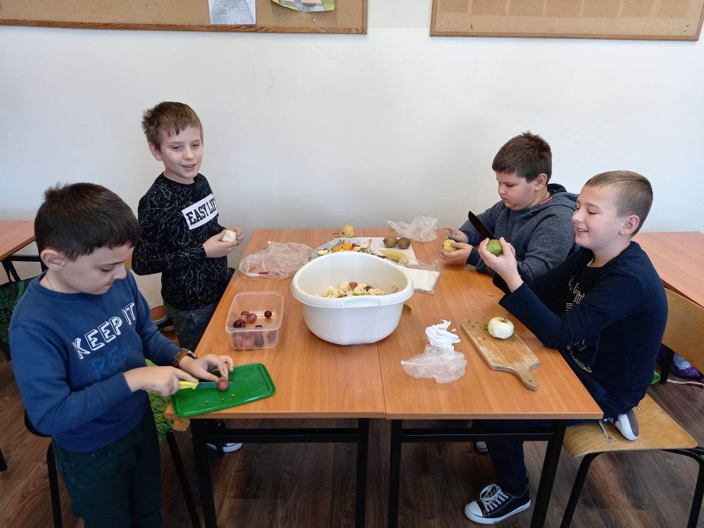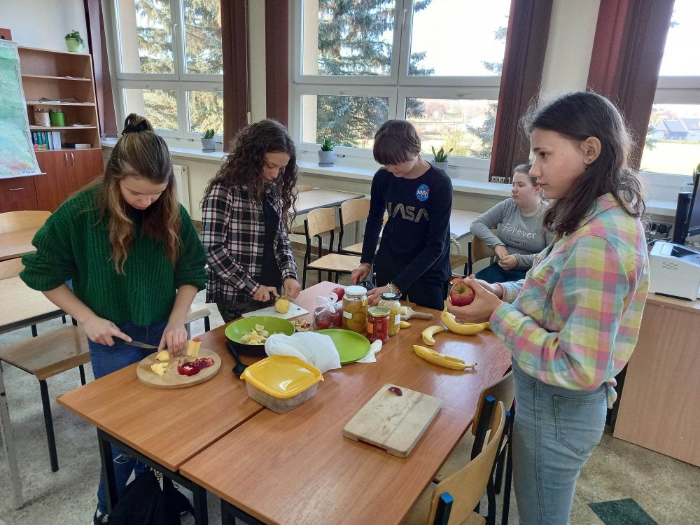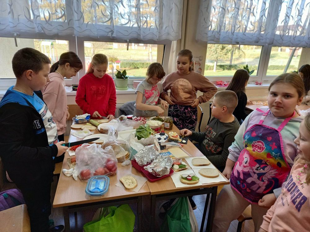 Europejskiego Dnia Zdrowego Jedzenia i Gotowania nie sposób świętować inaczej, jak tylko przygotowując i konsumując zdrowy posiłek. 8. listopada uczniowie klas I, IV-VIII własnoręcznie przygotowali drugie śniadanie. W menu pojawiły się m.in. kanapeczki, koreczki, tortille, naleśniki, sałatki owocowe, jogurty, lemoniada oraz świeżo wyciśnięte soki z owoców. Chociaż było przy tym trochę bałaganu, młodzi kucharze spisali się na medal.
