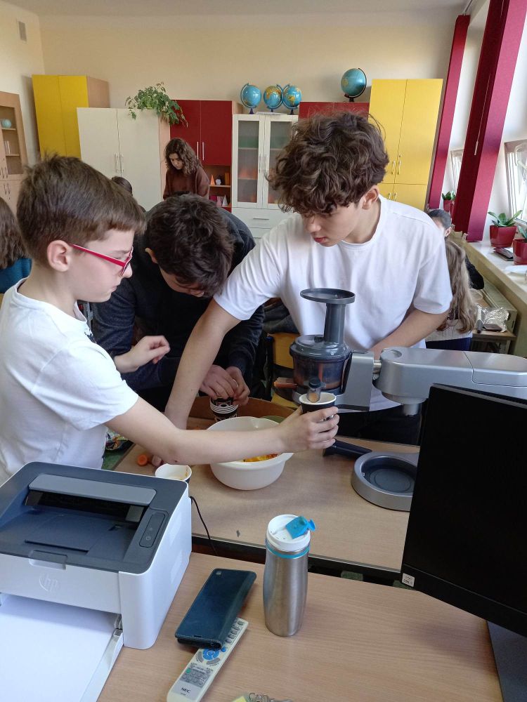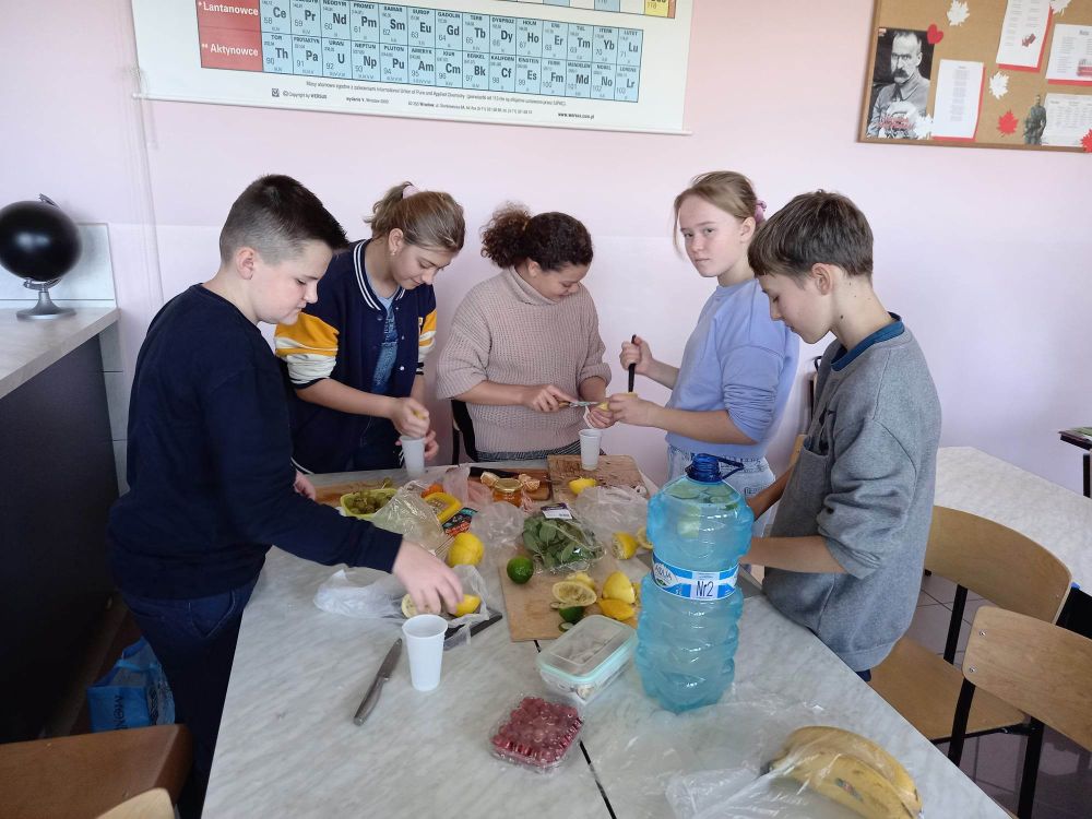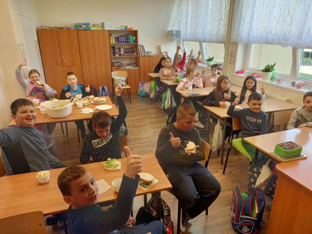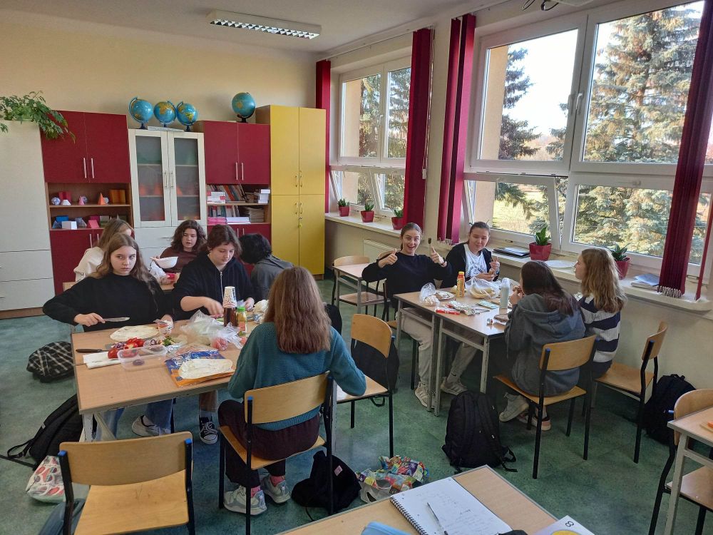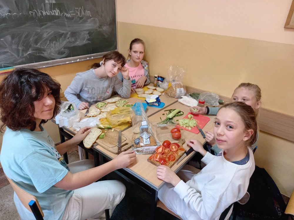 Europejskiego Dnia Zdrowego Jedzenia i Gotowania nie sposób świętować inaczej, jak tylko przygotowując i konsumując zdrowy posiłek. 8. listopada uczniowie klas I, IV-VIII własnoręcznie przygotowali drugie śniadanie. W menu pojawiły się m.in. kanapeczki, koreczki, tortille, naleśniki, sałatki owocowe, jogurty, lemoniada oraz świeżo wyciśnięte soki z owoców. Chociaż było przy tym trochę bałaganu, młodzi kucharze spisali się na medal.