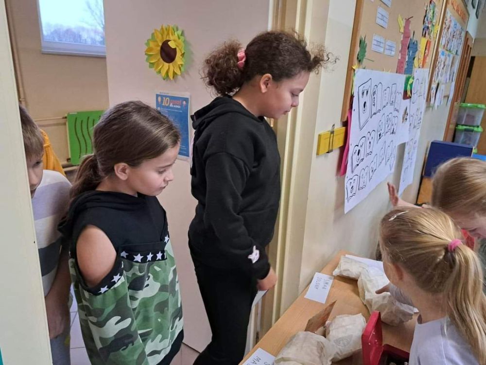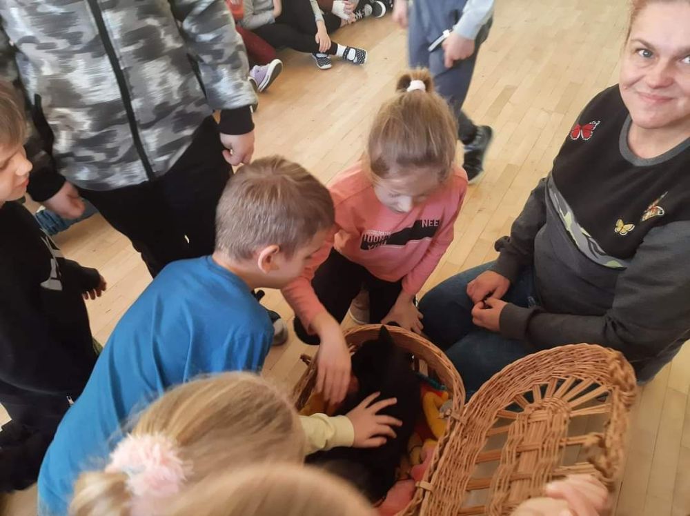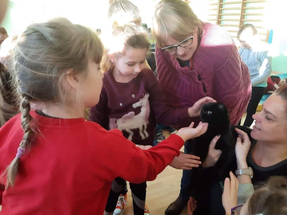 Klasa I zorganizowała w szkole zbiórkę funduszy, karmy, środków czystości i zabawek na rzecz zwierząt z fundacji "PSYstań" w Gorlicach. Pierwszoklasiści przeprowadzili w dniu 24 listopada sprzedaż popcornu w szkole, z której udało się zebrać niemałą kwotę 627 złotych. Pozostali uczniowie chętnie włączyli się w akcję zbierania karmy i zabawek dla bezdomnych zwierząt. Zebrane fundusze i środki materialne przekazaliśmy prezes fundacji, pani Katarzynie Kosińskiej, która przybyła do szkoły 13 grudnia wraz ze swoją podopieczną, kotką ,,Dożynką". Podczas spotkania z panią Kasią uczniowie dowiedzieli się, w jaki sposób karmić zwierzęta domowe i te dziko żyjące. Otrzymali również informacje, jakie warunki trzeba spełnić, aby adoptować zwierzę z fundacji. Największą radość sprawiła dzieciom możliwość pomocy naszym ,,braciom mniejszym". Dziękujemy wszystkim, którzy tak ochoczo włączyli się w akcję.