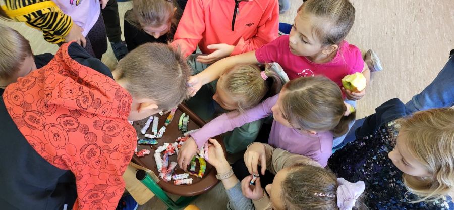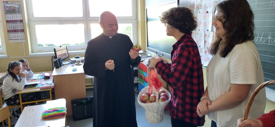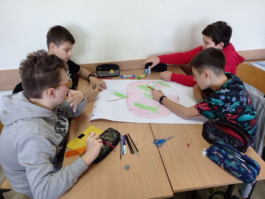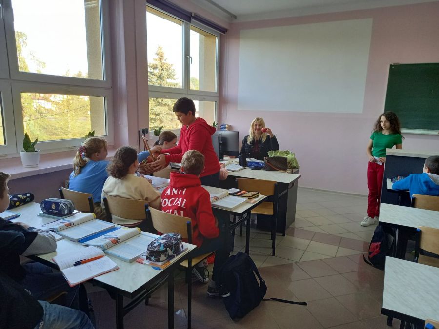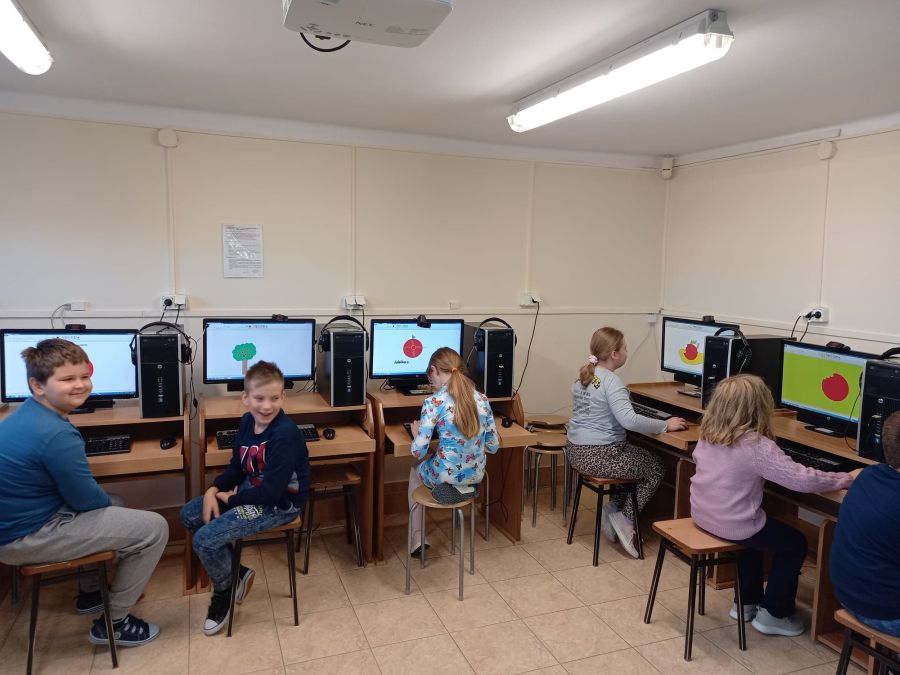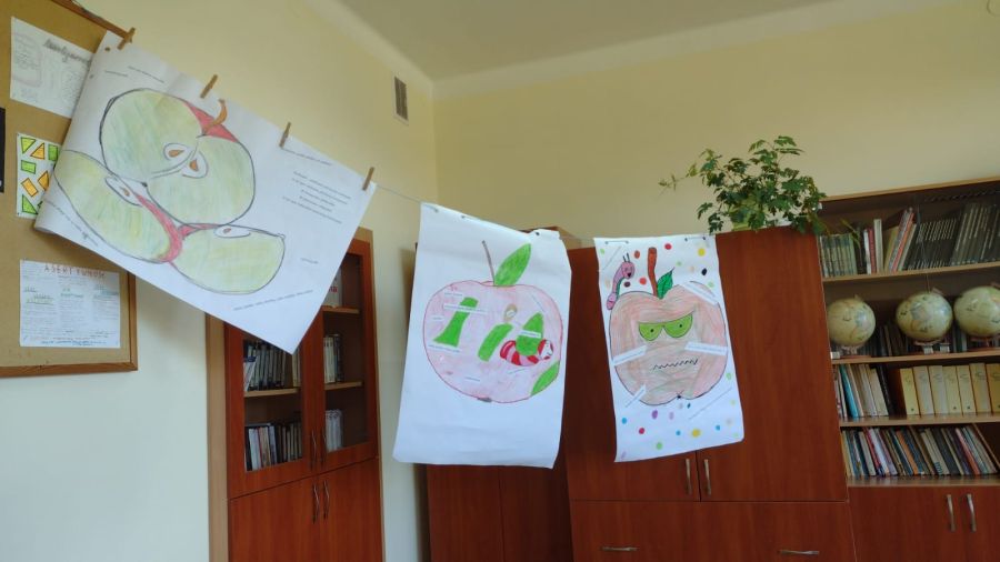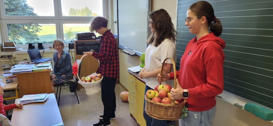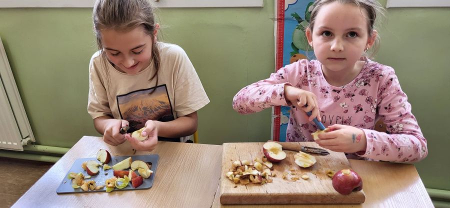 28 września świętowaliśmy Międzynarodowy Dzień Jabłka. W tym dniu dzieci przyszły do szkoły ubrane w kolorach jabłek. Była to też okazja, aby przypomnieć, że jedzenie warzyw i owoców jest podstawą, aby zapewnić sobie zdrowie. Samorząd Uczniowski częstował wszystkich jabłkami a temat owocu królował na każdej lekcji. I tak: jabłka dzieliliśmy i mnożyli, o jabłku pisaliśmy i śpiewali. Było jabłko rysowane, graficznie tworzone a nawet degustowane w postaci szarlotki czy soku.