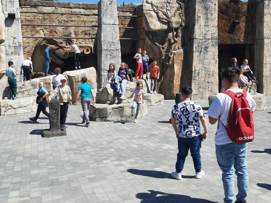 Po 70 minutach zwiedzania o godz. 12.00 uczestniczyliśmy we Mszy św. w Bazylice Ofiarowania Najświętszej Maryi Panny, gdzie dzieci i rodzice mieli okazję zobaczyć i dotknąć chrzcielnicy przy której przyjął sakrament chrztu świętego Karol Wojtyła oraz zabrać ze sobą wodę święconą. Po krótkim dziękczynieniu w Bazylice udaliśmy się do Zatoru, na drugą część naszej pielgrzymki (już bardziej wycieczkową), gdzie spożyliśmy obiad, a następnie uczniowie przez 2.5 godziny korzystali z różnych atrakcji parku (rezerwat dinozaurów, park monograficzny oraz różnego rodzaju karuzelowych atrakcji).