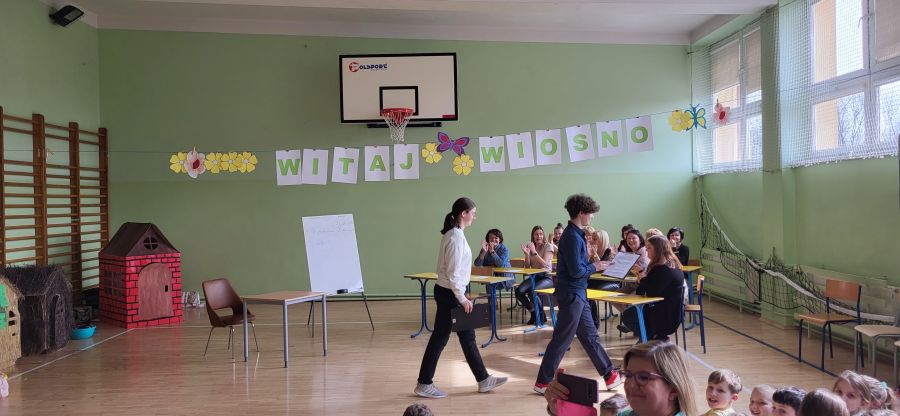 Najpiękniejszą porę roku, czyli wiosnę uczniowie naszej szkoły powitali na wesoło. Czekaliśmy na ten dzień z niecierpliwością, bo w tradycji szkoły Pierwszy Dzień Wiosny obchodzi się w niecodzienny sposób.