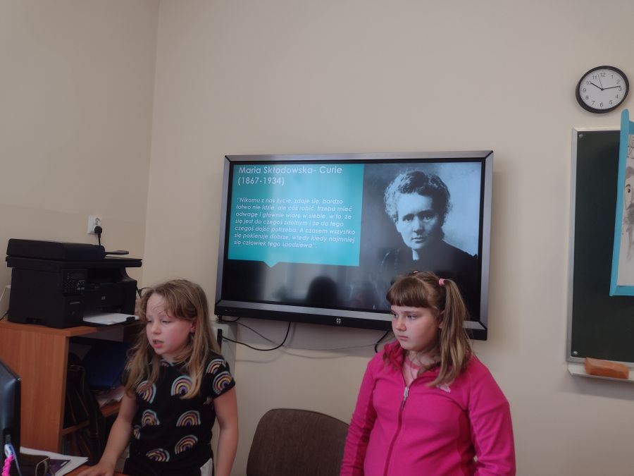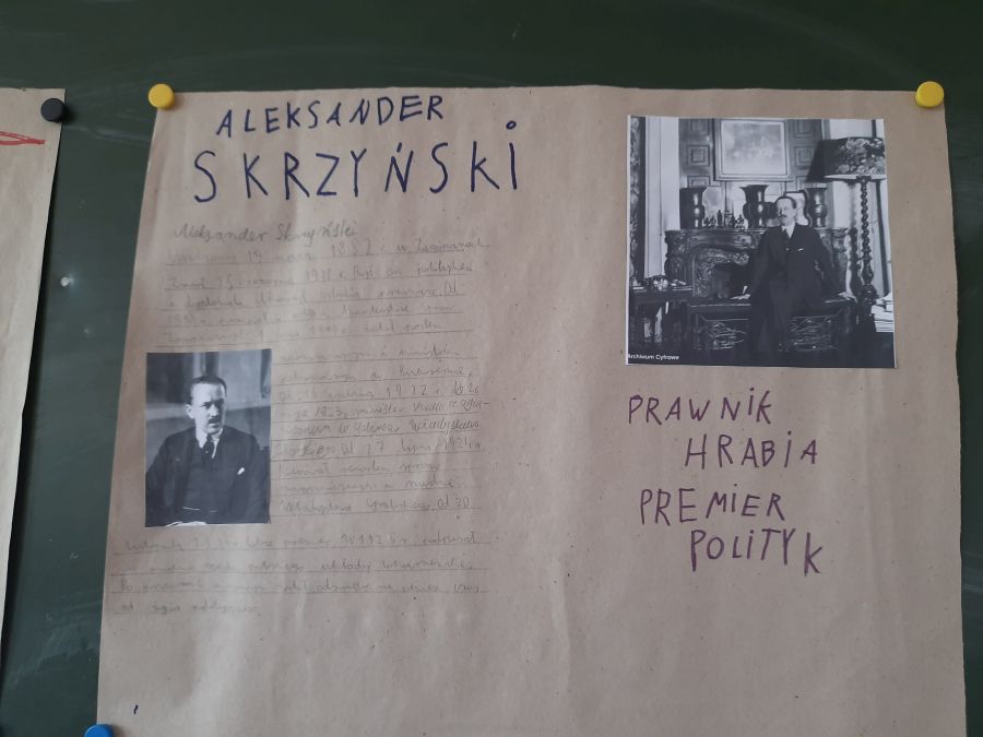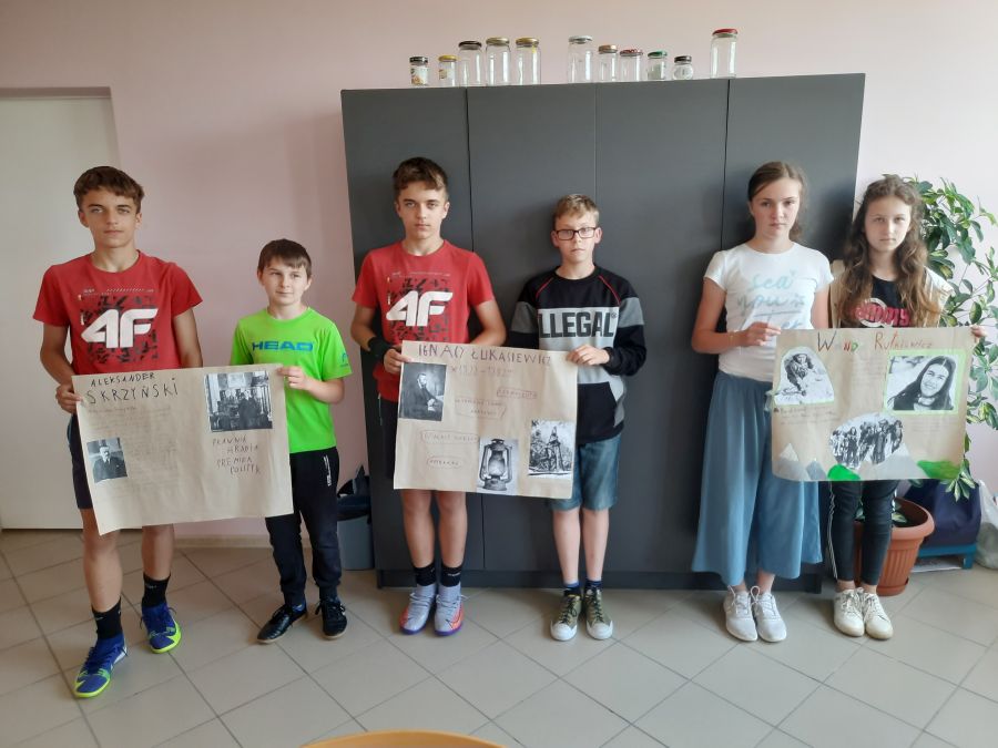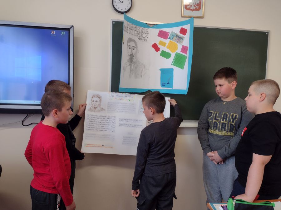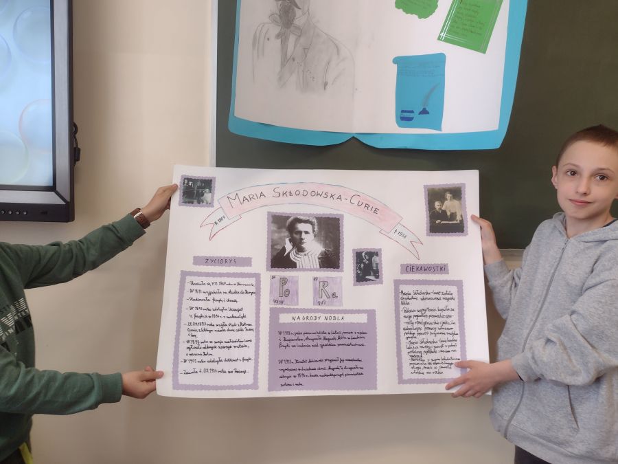 Uczniowie klasy czwartej na lekcji historii otrzymali zadanie zaprezentowania sylwetek Polaków, którzy zostali laureatami Nagrody Nobla Natomiast szóstoklasiści na zajęciach z wychowawcą opracowali tematyczne plakaty, prezentujące sukcesy rodaków: Wandy Rutkiewicz, Ignacego Łukasiewicza, Aleksandra Skrzyńskiego, Jana Pawła II czy Marii Skłodowskiej-Curie. Klasa siódma prezentowała dokonania polskich artystów i uczonych przełomu wieków XIX i XX. Wszyscy znakomicie wywiązali się z wyzwań małego projektu edukacyjnego. Entuzjastycznie zrealizowali cele, a każda z grup pokazała rezultaty własnej pracy.