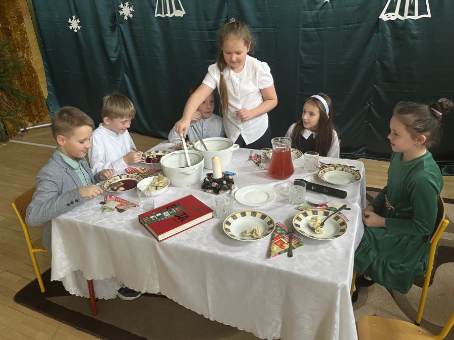 W czwartek 22 grudnia w naszej szkole odbyło się spotkanie wigilijne. Odświętnie ubrani uczniowie zasiedli przy wspólnych stołach.
