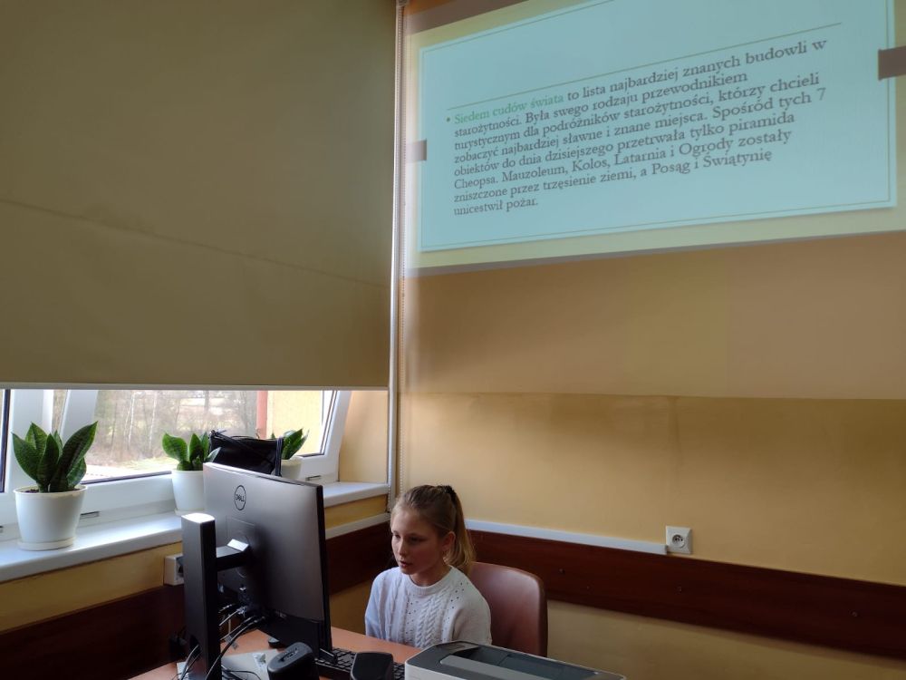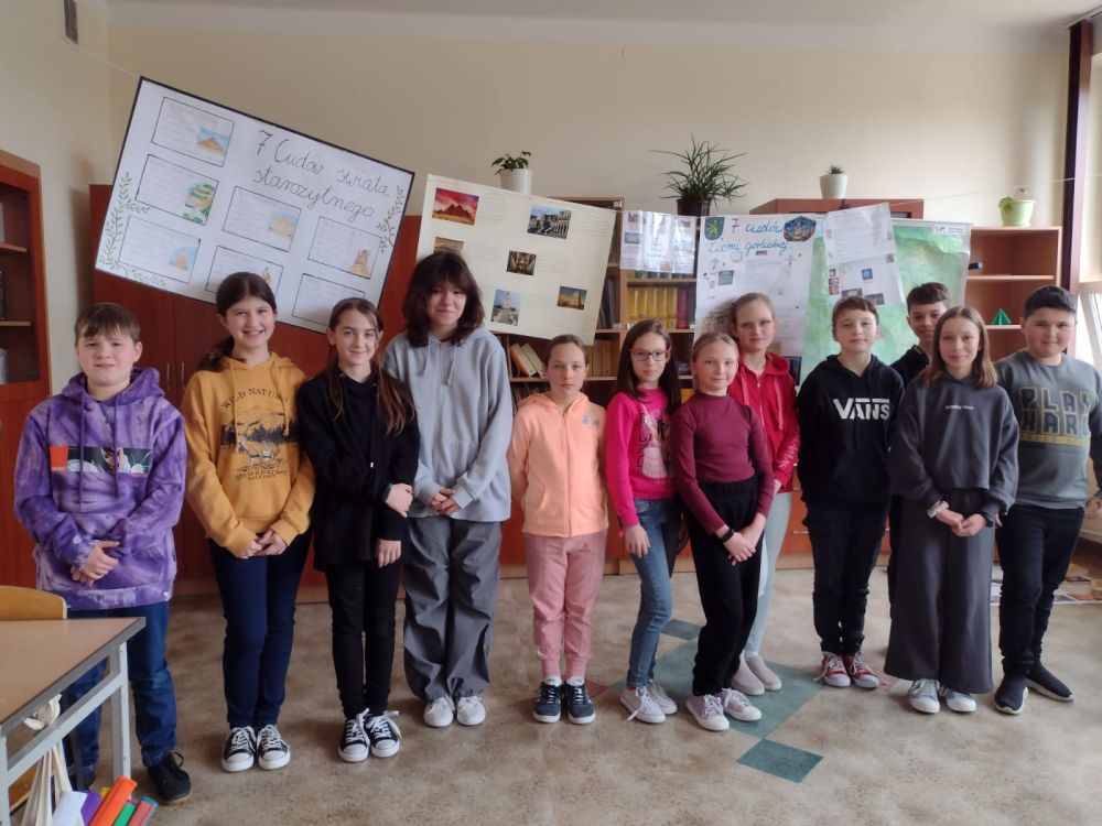 Uczniowie klasy piątek zainspirowani tematyką lekcji przedmiotowych w marcu podjęli pracę w projektach edukacyjnych. Pracowali w małych grupach wokół wybranego tematu. Niektórzy w prezentacji "Bogowie Grecji i Rzymu są wokół nas …" sprawdzili, które imiona na stałe wpisały się w kulturę polską, czyli poszukiwali śladów starożytnych bogów we współczesności. Inni przedstawili "Siedem cudów świata" lub "Siedem cudów Ziemi Gorlickiej", wzorując się na cudach architektury świata antycznego.