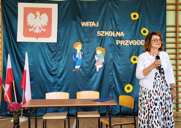 W swoim wystąpieniu powitalnym Pani Dyrektor nawiązując do słów W. Petersona, przekazała informacje o sukcesach egzaminu ósmoklasisty. Następnie wręczyła nagrodę jubileuszową pani Małgorzacie Augustyn-Nowak. Pan Krystian Szul poprowadzi zajęcia wychowania fizycznego, a pani Katarzyna Ciapaj obejmuje obowiązki pedagoga szkolnego, psychologa i pedagoga specjalnego. Dr Iwona Jamro nakreśliła ramy organizacyjne nowego roku, warunki funkcjonowania świetlicy i stołówki. Wskazała na programy i projekty, które będą kontynuowane w nowym roku szkolnym: "Laboratoria Przyszłości", Narodowy Program Czytelnictwa, "Poznaj Polskę" oraz "Edukacja w Szkołach Prowadzących Kształcenie Ogólne na Terenie Ziemi Gorlickiej". W zagórzańskiej szkole widoczne są już efekty w ramach "Dostępnej szkoły". Pani Dyrektor do zgromadzonych zwróciła się słowami "Niech rok 2022/2023 będzie kolejną drogą do osiągnięcia szczytu rozwoju dla Was uczniowie i dla nas dorosłych. Skupmy wszystkie siły na tym, co chcemy osiągnąć, a sukces będzie odnotowany."