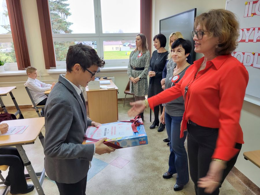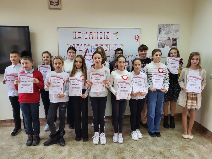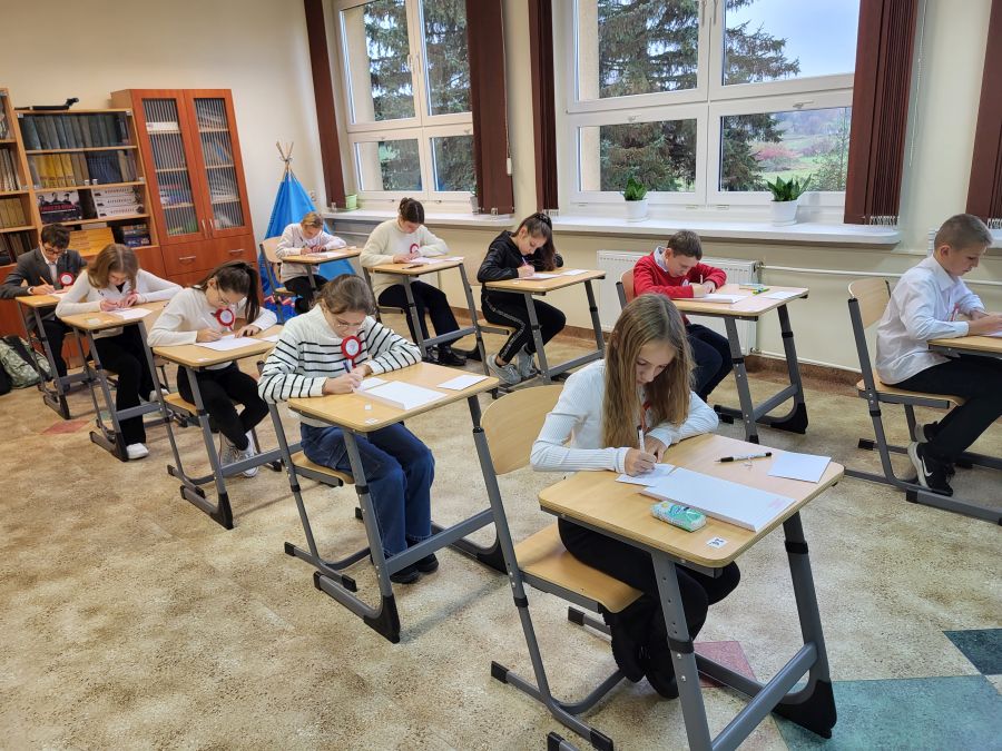 Mamy jesień bogatą w wydarzenia. We czwartek 16 listopada odbyło się II Gminne Dyktando Niepodległościowe "Wybiła godzina!" Gościliśmy piętnaścioro uczniów z klas 4-6, którzy sprawdzili swoje praktyczne umiejętności poprawnej pisowni. Dyktowany tekst nawiązywał do zagadnień sprzed 105 lat z mocnym zaakcentowaniem bitwy pod Gorlicami i roli księdza Bronisława Świeykowskiego. Laureatami zostali: Lena Wacławik (Kwiatonowice) - I miejsce, Miłosz Duran (Klęczany) - II miejsce oraz Michalina Smołkowicz (Ropica Polska) - III miejsce. Dyplomy i nagrody rzeczowe wręczyła dyrektor szkoły Iwona Jamro. W Szkole Podstawowej im. Komisji Edukacji Narodowej w Zagórzanach dbałość o piękno poprawnego języka polskiego stanowi integralną część wychowania obywatelsko-patriotycznego. Wydarzenie przygotował zespół: Joanna Cieśla, Aneta Motyka I Małgorzata Stępień. Prace uczniów oceniała komisja konkursowa w składzie: Małgorzata Stępień, Katarzyna Ciapaj, Krystyna Holik i Barbara Kudławiec. Gratulujemy wyników. Dziękujemy za efektywną współpracę.