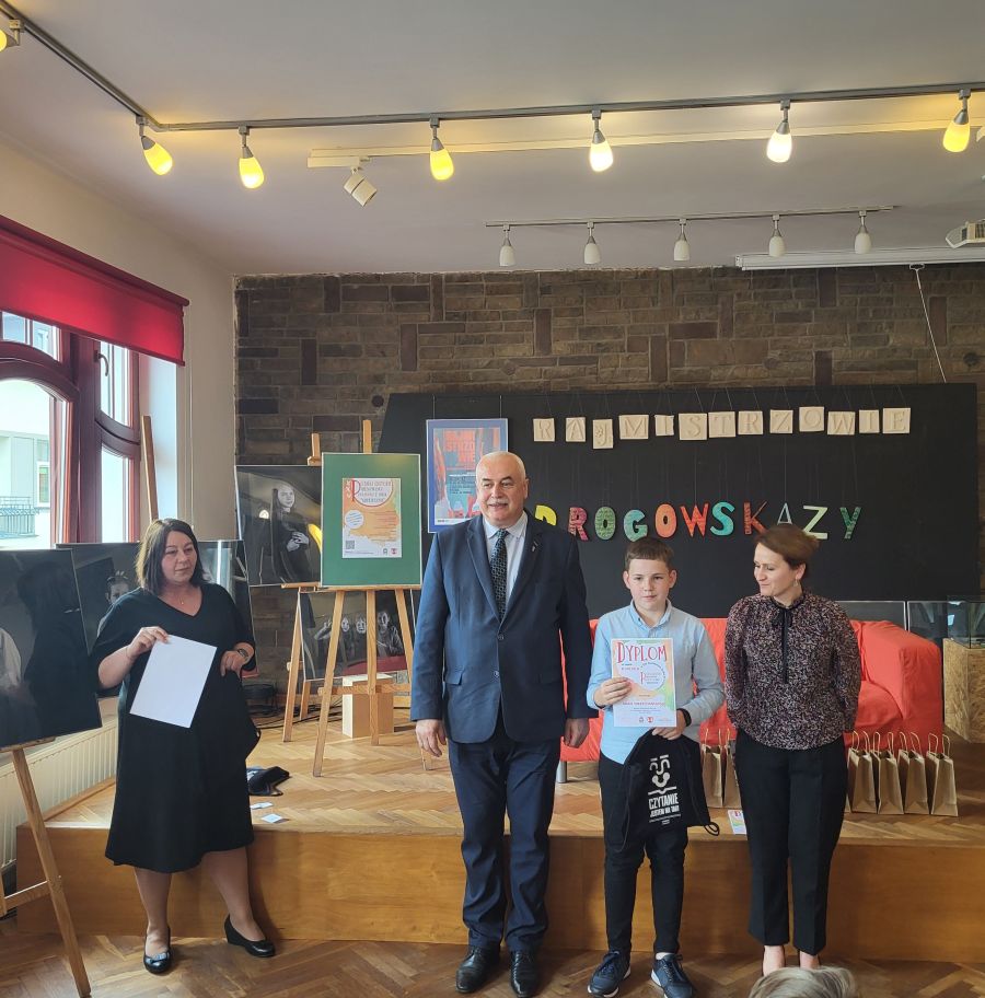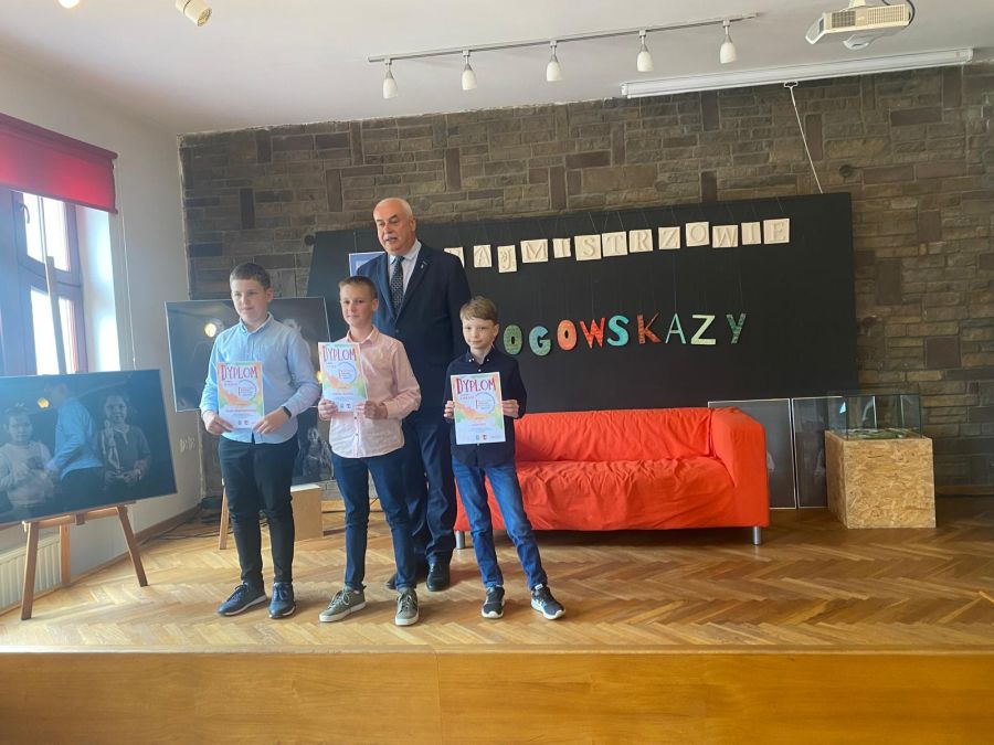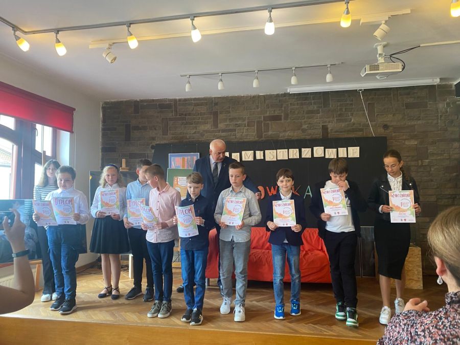 Dnia 23 maja w Miejskiej Bibliotece Publicznej w Gorlicach odbyła się Jubileuszowa 25. edycja Powiatowego Konkursu Czytelniczego "Poznaj historie niezwykłych Polaków z serią Nieprzeciętni". W dwuetapowych zmaganiach czytelniczych wzięło udział 69 uczniów z klas 4, 5 i 6 szkół podstawowych powiatu gorlickiego. O tytuł laureata walczyło 24 najlepszych. Finałowy test dotyczył trzech książek: Gen i już! Opowieść o Stefanie Banachu, Wędrując po niebie z Janem Heweliuszem, Hej, zagrajcie siarczyście! Opowieść o Stanisławie Moniuszce. Nasi uczniowie odnieśli niemały sukces w konkursie. Praca i determinacja czwartoklasistów sprawiła, iż chłopcy zgarnęli dwa miejsca na podium, zostając laureatami. Marcel Niziołek zajął 1 miejsce, natomiast Adam Wierzchanowski 3.