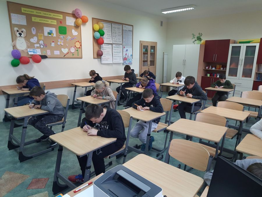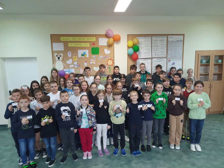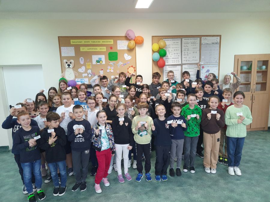 Te tabliczkowe zmagania miały miejsce w szkole z tego powodu, że nauczycielki matematyki: pani Barbara Kudławiec i pani Aneta Motyka zgłosiły naszą szkołę do udziału w XIII Światowym Dniu Tabliczki Mnożenia pod hasłem Młodsi sprawdzają, czy starsi tabliczkę mnożenia znają!