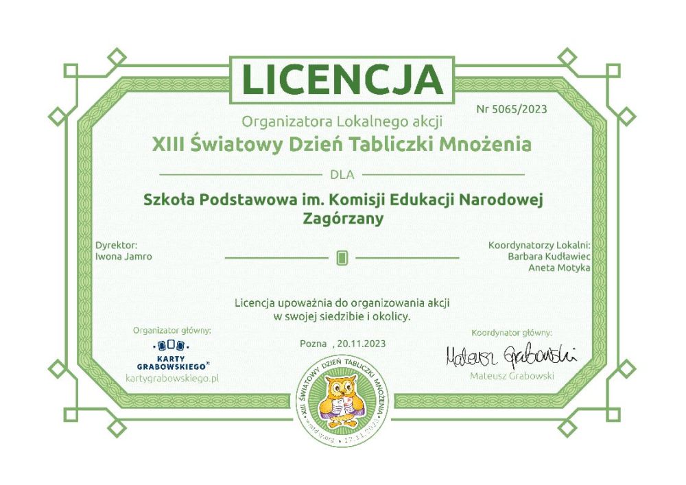 Akcja ŚDTM w naszej szkole miała na celu propagowanie zabawowej formy nauczania - uczenia się matematyki. Zachęciła do przypomnienia sobie tabliczki mnożenia w przyjemny, niecodzienny sposób. Akcja jest również okazją dla uczniów do nadrobienia "tabliczkowych" zaległości po wakacjach. Natomiast dorośli mogą dać przykład dzieciom – pokazując swoją świetną znajomość trudnych przypadków mnożenia. Posiadana legitymacja jest ogromną motywacją dla dzieci do dalszego pogłębiania wiedzy matematycznej i osiągania lepszych wyników w szkole.