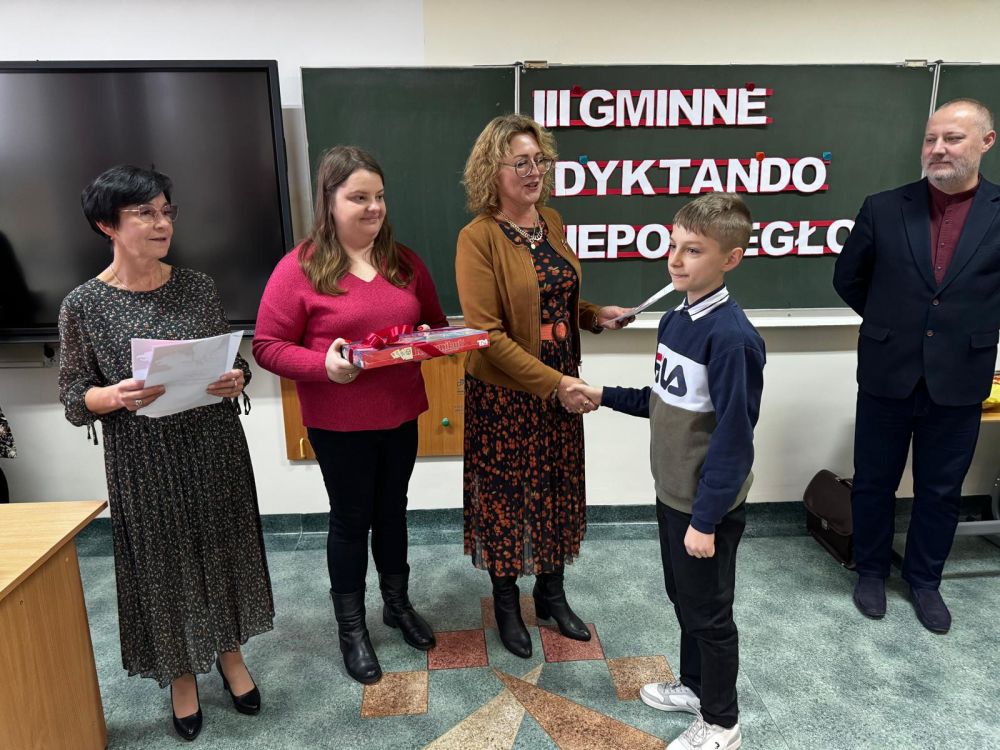 Dbamy o piękno naszego języka ojczystego. W środę 20 listopada br. zorganizowaliśmy już po raz trzeci Gminne Dyktando Niepodległościowe "Wybiła godzina!" Reprezentanci klas 4-6 z ośmiu szkół podstawowych sprawdzali swoje umiejętności ortograficzne. Dyplomy, nagrody rzeczowe oraz gratulacje z rąk Pani dyrektor Iwony Jamro odebrali laureaci: Maja Moroń (SP Zagórzany) I miejsce, Filip Wołkowicz (SP Zagórzany) II miejsce oraz Tymoteusz Lisowicz (SP Ropica Polska) III miejsce. Prace uczniów oceniała komisja konkursowa w składzie: Katarzyna Ciapaj, Barbara Kudławiec, Małgorzata Stępień i Izabela Adamczyk-Szura. Wszyscy uczestnicy otrzymali piękne okolicznościowe dyplomy potwierdzające udział w zmaganiach językowych. Organizacyjnie wydarzenie przygotowały Joanna Cieśla, Aneta Motyka i Małgorzata Stępień. Uczestnikom gratulujemy świetnych wyników. Dziękujemy wszystkim za efektywną współpracę.