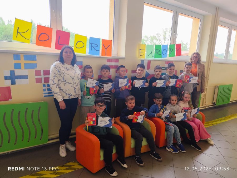 Z okazji Dnia Unii Europejskiej uczniowie klas I–III wzięli udział w szkolnym konkursie "Kolory Europy". Zadaniem uczestników było rozpoznanie 27 flag państw członkowskich UE. Bezbłędną znajomością wszystkich flag wykazali się: