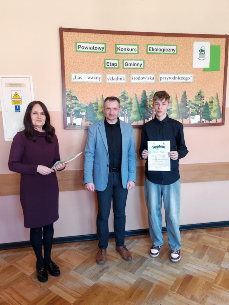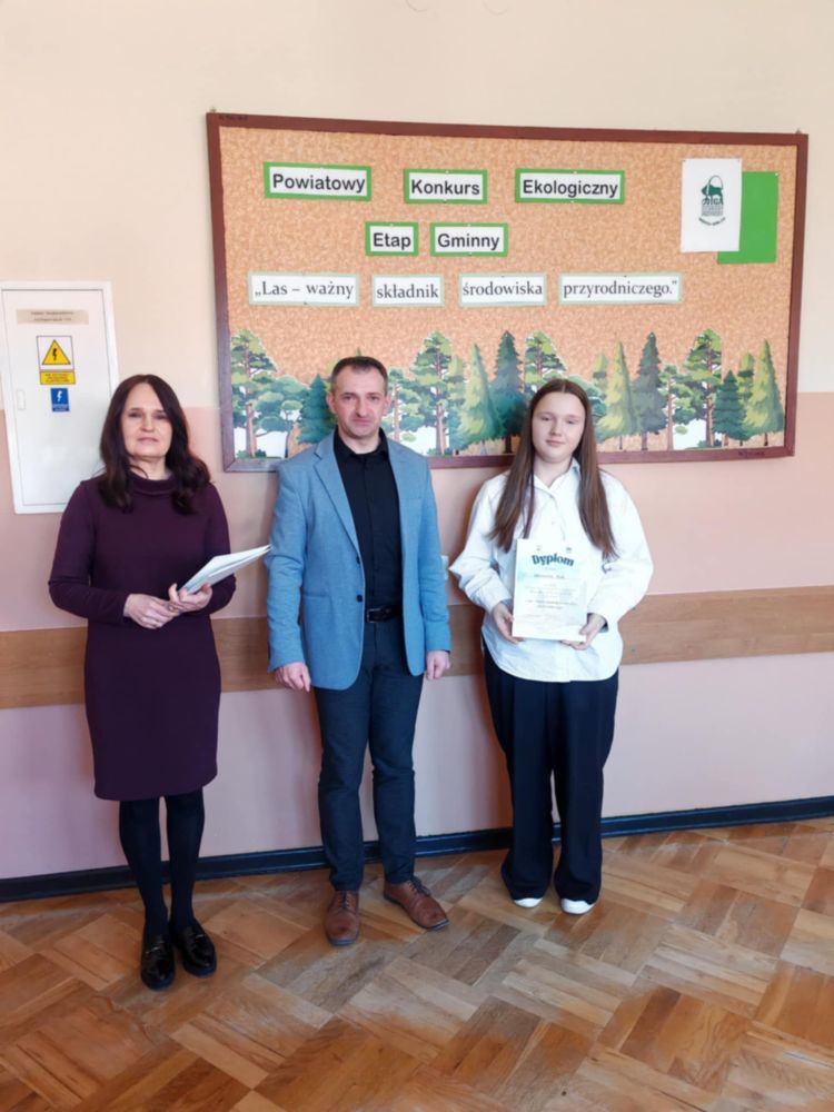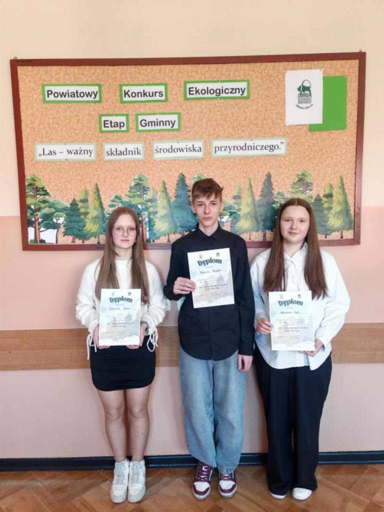 Liga Ochrony Przyrody jest organizatorem konkursu "Las-ważny składnik środowiska przyrodniczego". Etap gminny odbył się dnia 20 marca w Szkole Podstawowej im. Adama Mickiewicza w Dominikowicach. Konkurs przebiega w trzech etapach. Na każdym poziomie uczniowie rozwiązują test złożony z zadań zamkniętych. Naszą szkołę reprezentowali uczniowie: Weronika Kuk i Mateusz Bargieł z klasy ósmej oraz Karolina Jamro z klasy siódmej. Dziękujemy za chęć wykazania się wiedzą ekologiczną.