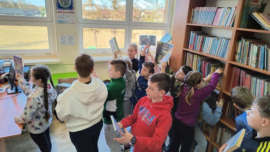 Słoneczko coraz wyżej, nabrzmiewają pierwsze pączki na gałązkach. Nieśmiało rozkwitają pierwiosnki, przebiśniegi, krokusy, żonkile, w kielichach uwijają się pierwsze owady. Lazur nieba, śpiew ptaków, słońce otula przyjemnym ciepłem, przyroda budzi się do życia. Uczniowie klasy trzeciej również czekają na wiosnę. W środę 12 marca "rozwijali skrzydła" swoich możliwości, wykorzystując sprzyjający klimat szkolnej biblioteki. Na półkach regałów szukali literackich zwiastunów wiosny. Praktycznie dokonywali wyborów książek. Analizowali szatę zewnętrzną, kolorystykę, układ grafiki, poznawali zawartość treści. Indywidualnie prezentowali wybrane książki. Wskazywali zalety, dobierali argumenty w taki sposób, aby wywołać zainteresowanie, zadziwienie rówieśników, zachęcić się wzajemnie. Okazało się, że w literaturze jest mnóstwo wiosennych inspiracji, jej kolorów, dźwięków, zachowań. Po książkę można sięgnąć wiele razy. "To, co musiałeś odkryć samodzielnie, zostawia w Twoim umyśle ścieżkę, którą w razie potrzeby możesz pójść jeszcze raz". (G. Lichtenberg) Wspólnie realizowane zajęcia biblioteczne i zajęcia rozwijające umiejętności uczenia się dają uczniom szanse skutecznego opanowania kompetencji. Uczniowie mają poczucie zadowolenie i sukcesu, zaczynają rozumieć coś, czego nie spodziewali się pojąć.