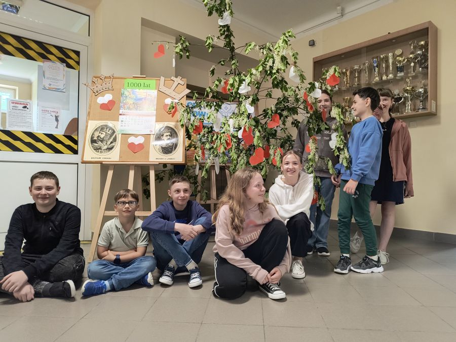 Tysięczna rocznica koronacji Bolesława Chrobrego zasługuje na spektakularne obchody. Dnia 25 kwietnia w naszej szkole odbyło się historyczno-kulturowe wydarzenie "Tysiąclecie Korony Polskiej". Małgorzata Stępień oraz ksiądz Michał Gądek wykorzystali formułę Flash mob. Uczniowie spontanicznie zgromadzili się wokół milenijnego drzewem oraz tematycznej planszy z kartką kalendarza, portretami Bolesława Chrobrego i Mieszka II. Niebanalnym momentem dla najmłodszych było zdobienie monarszych koron. Uczniowie klas 4-8 obejrzeli film o kształtowaniu się narodu i państwa, po czym tworzyli listę 1000 powodów do dumy Polaków. Czeremcha rozkwitła biało-czerwonymi sercami. Był to dzień pełen emocji, zabawy i edukacji. Wspólne świętowanie przełomowej rocznicy stanowiło okazję do refleksji nad pozycją Polski w gronie europejskich monarchii.
