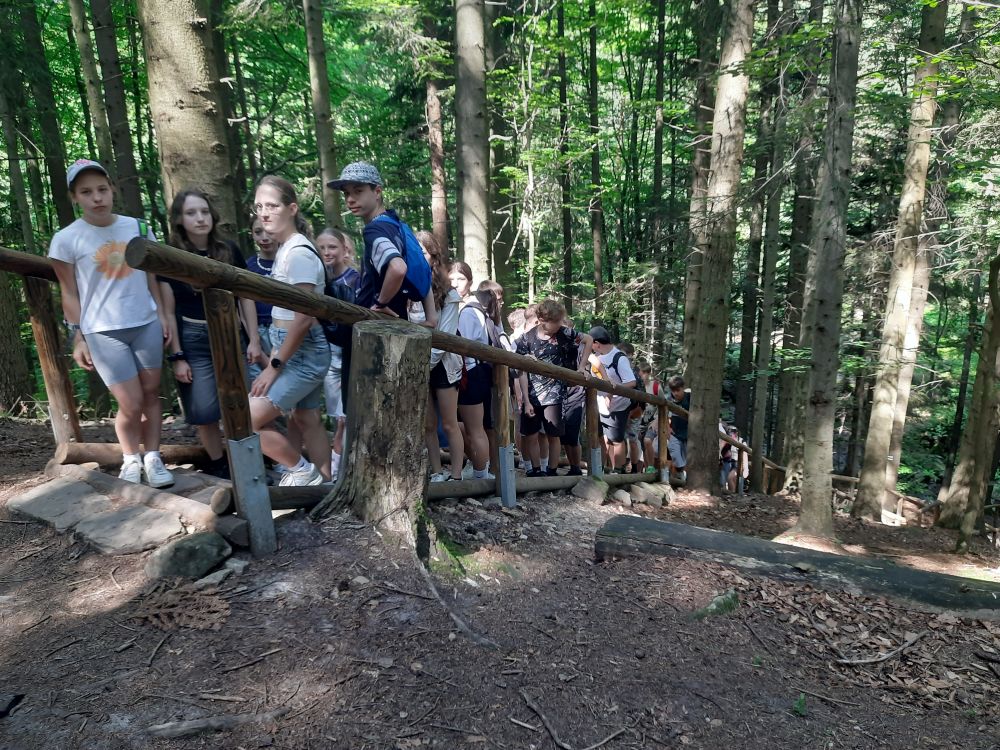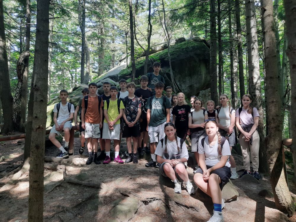Dnia 18 czerwca br. uczniowie klasy VII i VIII pod opieką wychowawców udali się na wycieczkę do Folusza. Wyjazd ten stanowił okazję do tego, by uczniowie najstarszych klas po latach wspólnej nauki i zabawy mogli miło i aktywnie spędzić czas, wspominając szkolne przygody. Na początku wyruszyliśmy ścieżką przyrodniczą na Diabli Kamień, a następnie nad Wodospad Magurski. Odkryliśmy walory turystyczne pobliskich okolic. Piękno krajobrazu oraz urzekająca ścieżka przyrodnicza przyjemnie nas zaskoczyły, gdyż mimo upału nie odczuwaliśmy zmęczenia. Następnie w Parku Wędkarskim odbyło się spotkanie przy ognisku a po nim zajęcia sportowe. Ten wspólnie spędzony dzień na długo pozowanie w pamięci naszych wychowanków, a wspomniany po latach wywoła uśmiech na niejednej twarzy.