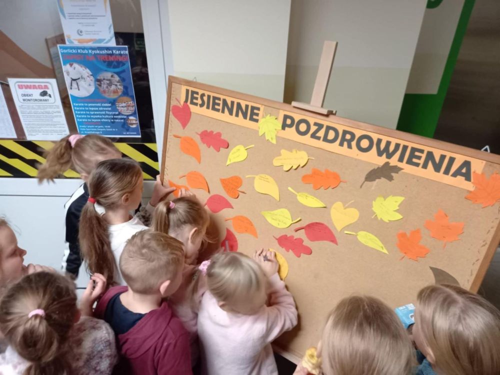 Złocista aura jesienna wypełniła szkolną przestrzeń w minionym tygodniu. Za oknami panowała listopadowa szaruga, lecz serca wypełniały ciepłe uczucia, na ustach królował promienny uśmiech. Wcielaliśmy się w różne role Myszki Miki Trenowaliśmy sposoby powitań i pisaliśmy serdeczne pozdrowienia. W strefie kocykowej czekała aromatyczna herbatka. Piątek upłynął pod znakiem kolorowych kredek i jesiennych obrazków. Było wesoło i kolorowo. Dzięki inicjatywie Samorządu Uczniowskiego nasze nastroje pokonały szarość listopadowych dni.