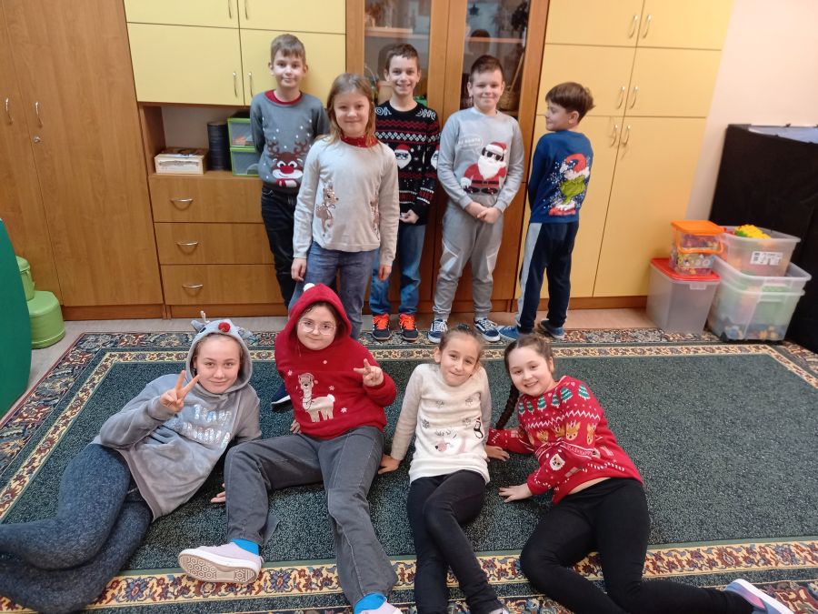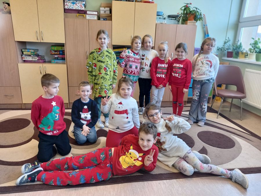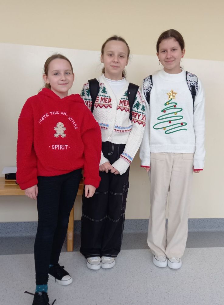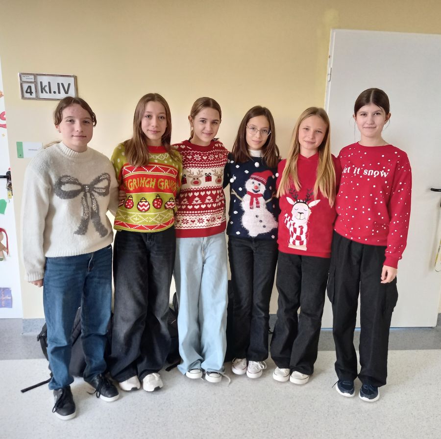 Nasze sale i korytarze nabrały świątecznego kolorytu. Każda klasa zadbała o atrakcyjną dekorację swoich drzwi, które prowadzą do pomieszczeń wypełnionych świątecznymi łańcuchami, gwiazdkami, świecidełkami i światełkami. Lekcje przedmiotowe nabrały zdecydowanie większego uroku. Uczniowie zaprezentowali bogaty asortyment skarpetek i sweterków tematycznych. Było ogromne urozmaicenie wzorów i barw. Czwartek wypełniły spotkania duże i małe. Najpierw w sali gimnastycznej obejrzeliśmy widowisko "Niebo-Piekło", a potem w swoich salach nacieszyliśmy się sobą, atmosferą świąteczną, posmakowaliśmy potraw i słodkości. Piątek wypełniły nastrojowe pastorałki, piosenki i kolędy. I tak urozmaicony przez Szkolne Koło Wolontariatu i Samorząd Uczniowski tydzień grudniowy przeprowadził wszystkich przez przełomowy czas pożegnania jesieni, przywitania zimy. Pani Katarzyna Ciapaj był koordynatorką działań. Wszyscy czekamy na piękne białe Boże Narodzenie.