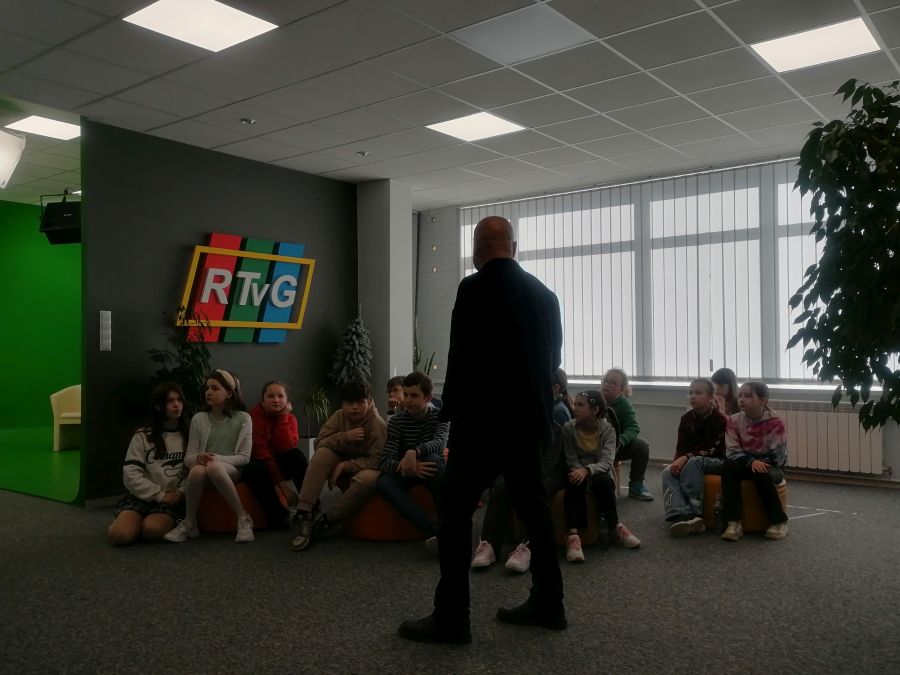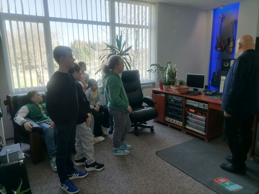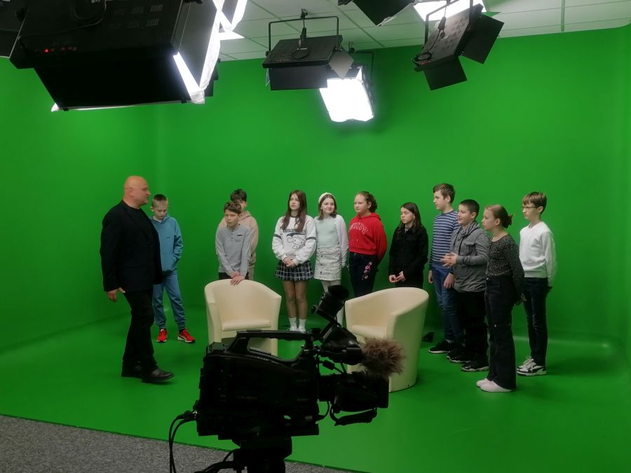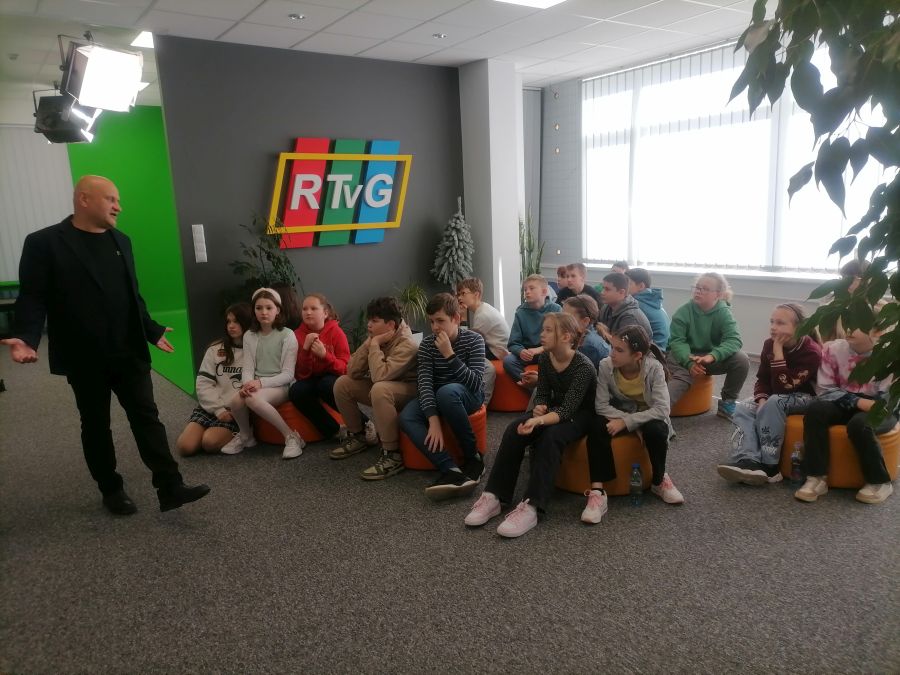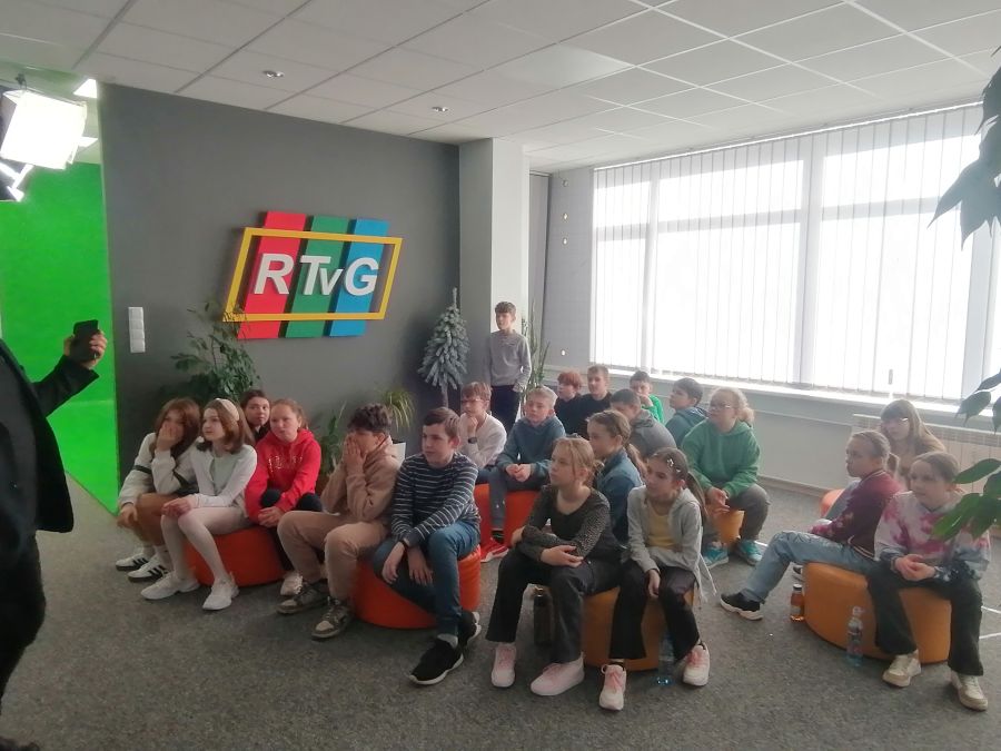 W dniu 4 kwietnia br. uczniowie klasy piątej pod opieką szkolnego doradcy zawodowego- pani Joanny Nosal oraz pani dyrektor – Iwony Jamro wyruszyli w podróż po świecie zawodów. Tym razem uczestniczyli w warsztatach dziennikarskich w Regionalnej Telewizji Gorlickiej. Przybyłych przywitał gospodarz telewizji pan Maciej Trybus. Na początku wizyty opowiedział młodzieży o działalności gorlickiej stacji telewizyjnej, wskazał na jej szeroki zasięg i popularność, wysokie miejsce w rankingu. Na uwagę zasługuje fakt, że jest to jedna z niewielu tak nowocześnie wyposażonych stacji telewizyjnych w Polsce. Pan Trybus zaprezentował studio telewizyjne, miejsce nagrań oraz ,,serce telewizji", czyli reżyserkę. W przystępny a zarazem ciekawy dla uczniów sposób mówił o tym, jak powstają nagrania. Wskazał ścieżkę edukacyjną, która umożliwia znalezienie pracy w telewizji. Opowiedział o cechach, kompetencjach, umiejętnościach ludzi pracujących w tej branży. Nie zabrakło też ciekawego przykładu -filmiku, który ukazał kreatywność ucznia gorlickiej szkoły ponadpodstawowej, dla którego przygoda z telewizją rozpoczęła się od filmu z klockami playmobil. W drugiej części spotkania młodzież mogła spróbować swoich sił, wchodząc w rolę dziennikarzy prowadzących wywiad oraz prezenterów telewizyjnych. Zajęcia warsztatowe okazały się strzałem w dziesiątkę, wielu z naszych wychowanków pokazało, na co tak naprawdę ich stać. Z niezwykła swobodą, wyczuciem, ale i intuicją, w profesjonalny sposób stanęli przed kamerami, zachowując naturalność. Zajęcia warsztatowe dostarczyły młodzieży informacji na temat świata pracy i zawodów, ale przede wszystkim stanowiły okazję, by mogli odkryć własne zasoby: umiejętności, zainteresowania i predyspozycje. Pozwoliły również kształcić kompetencje językowe. Być może wizyta w RTVG stanie się dla niektórych drogowskazem do sukcesu edukacyjno-zawodowego.