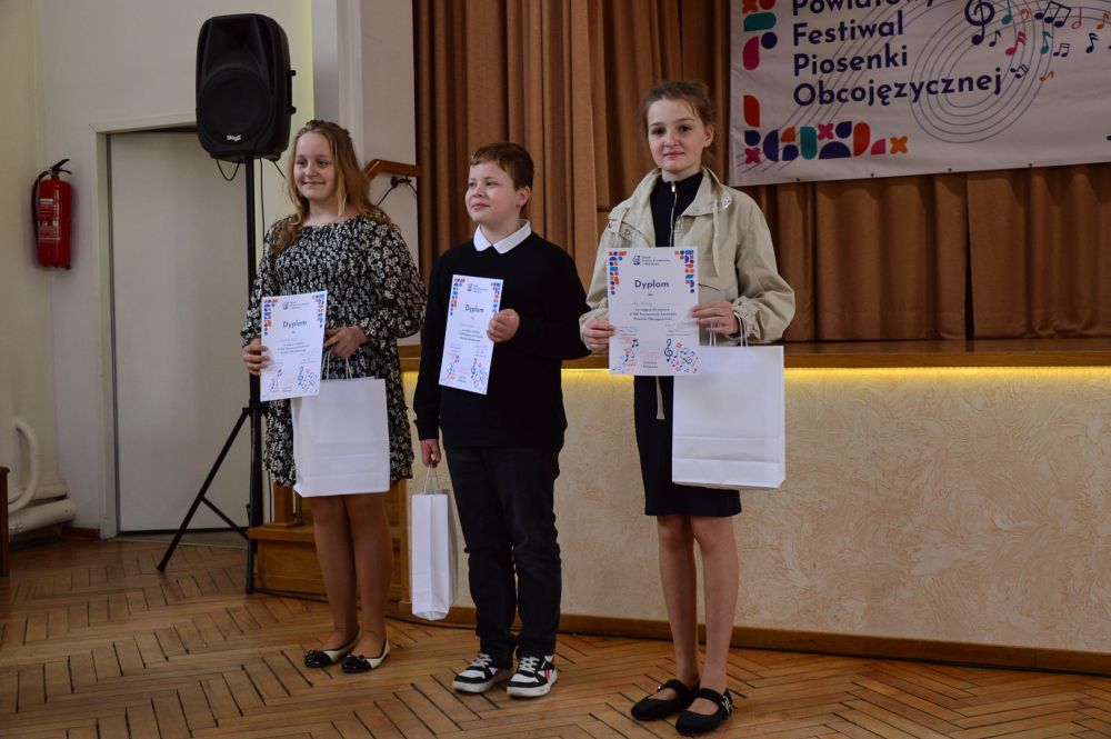 Dnia 21 maja 2025 roku odbył się XIX Powiatowy Festiwal Piosenki Obcojęzycznej w Kobylance. Jest to konkurs organizowany przez panią Katarzynę Woźniak i panią Annę Sołtys – Deda, nauczycielki języka angielskiego w Zespole Szkolno – Przedszkolnym w Kobylance. Festiwal odbył się w dwóch kategoriach wiekowych kl. III – V oraz VI – VIII. Naszą szkołę reprezentowały Maja Bukowska z klasy V oraz Nadia Gonek z klasy VII. Dziewczynki zaprezentowały się znakomicie. Maja zajęła III miejsce, a Nadia zdobyła Wyróżnienie.