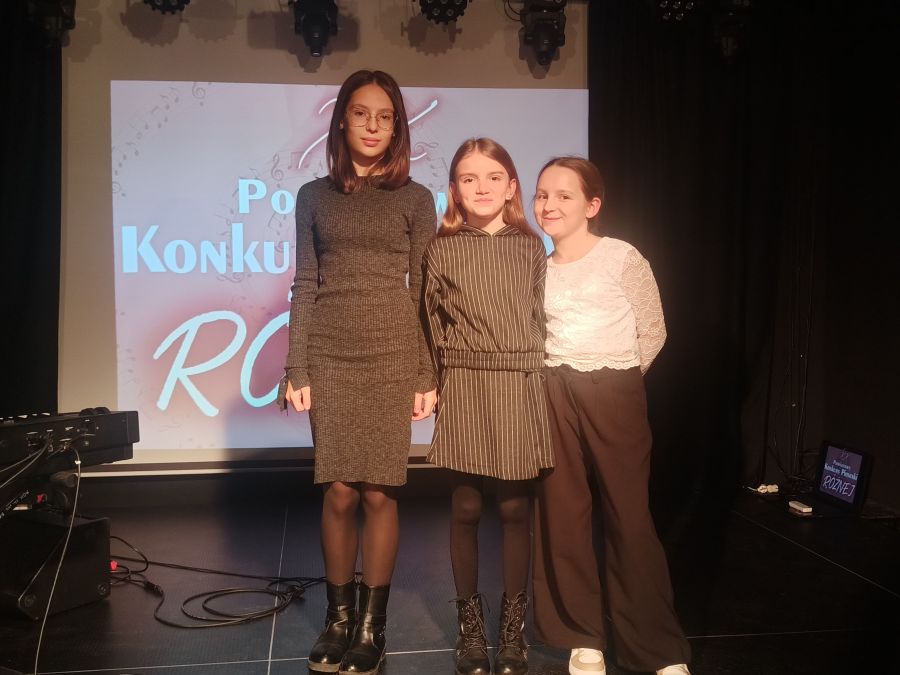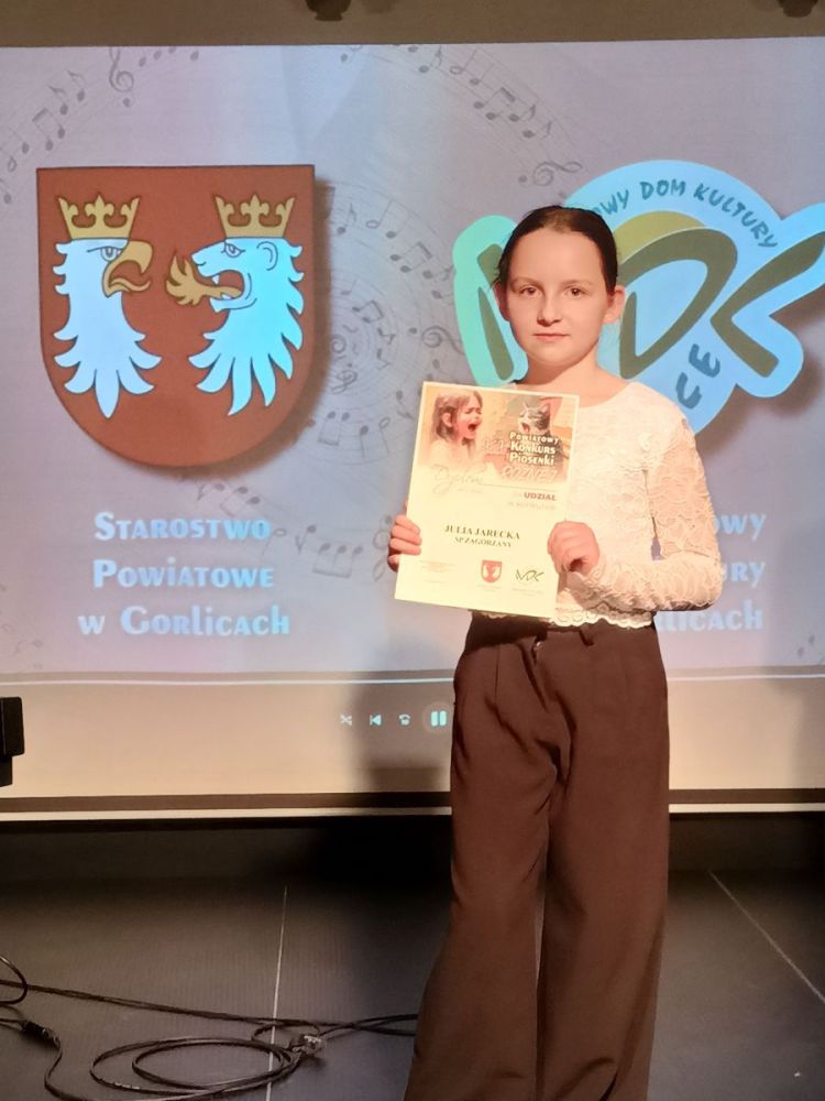 Dnia 22 listopada 2024 r. odbył się XX Powiatowy Konkurs Piosenki Różnej, którego organizatorem jest Miejski Dom Kultury w Gorlicach. Celem konkursu jest promowanie talentów dzieci i młodzieży z powiatu gorlickiego, popularyzacja śpiewu, a także twórcza wymiana doświadczeń muzycznych wśród wykonawców oraz ich opiekunów. Konkurencja była bardzo duża uczennice prezentowali się w III kategoriach wiekowych. Naszą szkołę reprezentowały Julia Jarecka z kl. IV, Lena Szymczyk z kl. IV oraz Nadia Gonek z klasy VII. Młode solistki nie zajęły żadnego miejsca, ale zaprezentowały się wspaniale. Jesteśmy bardzo dumni z naszych uczennic. Serdecznie gratulujemy wspaniałych występów!