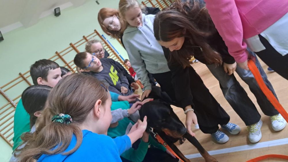 Po raz kolejny przeprowadziliśmy akcję pomocy dla zwierząt "Zbiórka dla Burusia i Burka". Klasa III zorganizowała w dniu 27 listopada sprzedaż popcornu w szkole, z której udało się zebrać niemałą kwotę 835 złotych. Pozostali uczniowie chętnie włączyli się zbiórkę funduszy, karmy, środków czystości i zabawek na rzecz zwierząt z fundacji "PSYstań" w Gorlicach. Zebrane fundusze i środki materialne przekazaliśmy prezes fundacji, pani Katarzynie Kosińskiej, która przybyła do naszej szkoły 13 grudnia wraz ze swoim pięknym pieskiem Vito. Podczas spotkania z panią Kasią uczniowie dowiedzieli się, w jaki sposób karmić zwierzęta domowe i te dziko żyjące. Uczniowie mieli okazję zdobyć informację na temat działalności fundacji poprzez obejrzenie ciekawej prezentacji. Największą radość sprawiła dzieciom możliwość pomocy naszym ,,braciom mniejszym". Dziękujemy wszystkim, którzy tak ochoczo włączyli się w akcję.