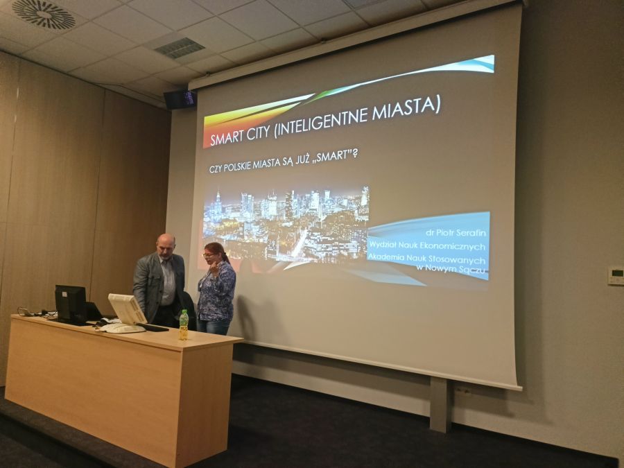 Ukoronowaniem poznawczej wyprawy był wykład z poglądową prezentacją na temat wykorzystania inteligentnych rozwiązań w różnych obszarach funkcjonowania miast Polski.