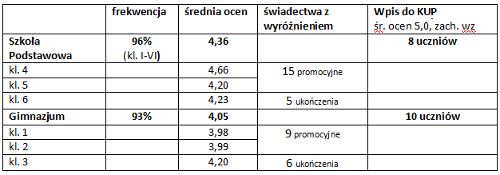 Niech myśl Marii Dąbrowskiej będzie klamrą spinającą miniony rok szkolny. Poniżej zamieszczamy zestawienie danych, które dają się wyrazić liczbami: