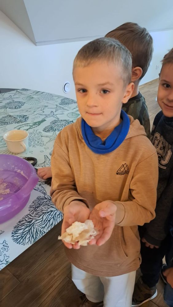 Królowała atmosfera niezwykłości. Tajemnica otaczała stoliki z wróżbami. Uczniowie z zaangażowaniem i uśmiechem uczestniczyli w laniu wosku przez klucz. Starali się odgadnąć, jaką przyszłość można wywróżyć z uzyskanych kształtów. Sporo emocji wzbudziła również zabawa "wędrujące buty". Wszystkie zmierzały do drzwi, za którymi kryły się przepowiednie przyszłości. Wielką atrakcją była niespodzianka muzyczna. Roześmiane twarze, błyszczące radością oczy świadczyły o dobrej zabawie. Kolejnym urozmaiceniem były warsztaty kulinarne. W kuchni też panowała magiczna atmosfera. Każda z grup własnoręcznie przygotowała andrzejkowe ciastka z ukrytymi wróżbami. Aromat pieczonych rogalików unosił się w całym "Skrawku Nieba". Podczas warsztatów artystycznych dzieci rozwijały swoją kreatywność. Nieskrępowana fantazja w użyciu różnokolorowych ozdób i brokatów zaowocowała imponującą ekspozycją magicznych różdżek andrzejkowych.