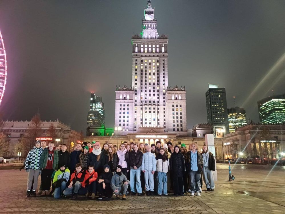 W dniu przyjazdu Warszawa przywitała nas deszczową aurą, jednak nie straciliśmy entuzjazmu. Naszą przygodę rozpoczęliśmy od wizyty w Sejmie, gdzie mogliśmy poczuć się jak posłowie i senatorowie. Mieliśmy też niecodzienną okazję zasiąść w loży poselskiej i sfotografować się przy lasce marszałkowskiej. Kolejne atrakcje czekały nas w Centrum Nauki Kopernik. Podziwiając i zwiedzając wynalazki techniki, mogliśmy m.in. porozmawiać z Mikołajem Kopernikiem. Z kolei udaliśmy się do Planetarium, gdzie na żywo obejrzeliśmy fascynujący pokaz nocnego nieba. Następnie uczestniczyliśmy w projekcji filmu "Niewidzialny Wszechświat". Seans pozwolił nam odkryć tajniki i zagadki Kosmosu. Dzień zakończyliśmy krótkim spacerem po Warszawie i noclegiem w luksusowym hotelu na Okęciu. Drugi dzień rozpoczęliśmy od zwiedzania Warszawskich Powązek. W chwilę zadumy i refleksji wprowadził nas spacer cmentarzem wojennym, w którym każdy grób, każda mogiła to opowieść o Polsce. Spoczywają tu osoby zasłużone dla stolicy i całego kraju, stanowią dla nas bezcenny pomnik historii. Wizyta w Muzeum Więzienia Pawiak była dla nas wzruszającym przeżyciem, gdzie mogliśmy zderzyć się z tragiczną historią naszego narodu. Z kolei udaliśmy się na Giełdę Papierów Wartościowych. Poznaliśmy historię giełdy, a także obejrzeliśmy prezentację multimedialną, podczas której dowiedzieliśmy się jak inwestować pieniądze. Kolejną atrakcją był wyjazd na 30 piętro Pałacu Kultury i Nauki, skąd podziwialiśmy panoramę Warszawy. Naszą przygodę w Warszawie zakończyliśmy w urzekającym Ogrodzie Botanicznym, który wprawił nas w zachwyt przepiękną iluminacją świetlną. Wędrówka po rozświetlonych alejkach była prawdziwą ucztą dla zmysłów. Jednocześnie stanowiła okazję do poszerzania horyzontów, zgłębiania wiedzy i świetnej zabawy, której zwieńczeniem była niespodzianka w postaci nagród. Stolica z pewnością zafascynowała uczniów, a nieodkryte zakątki będą inspiracją do kolejnych wizyt.